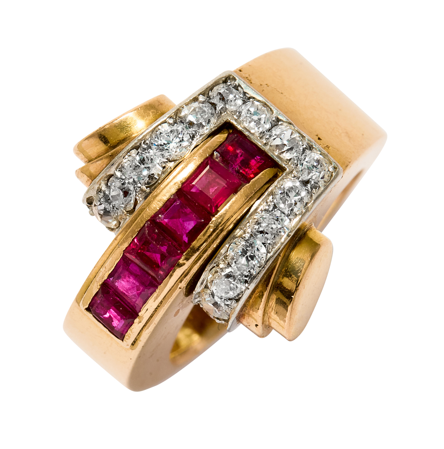 GOLD, RUBY AND DIAMOND RING, CIRCA 1940