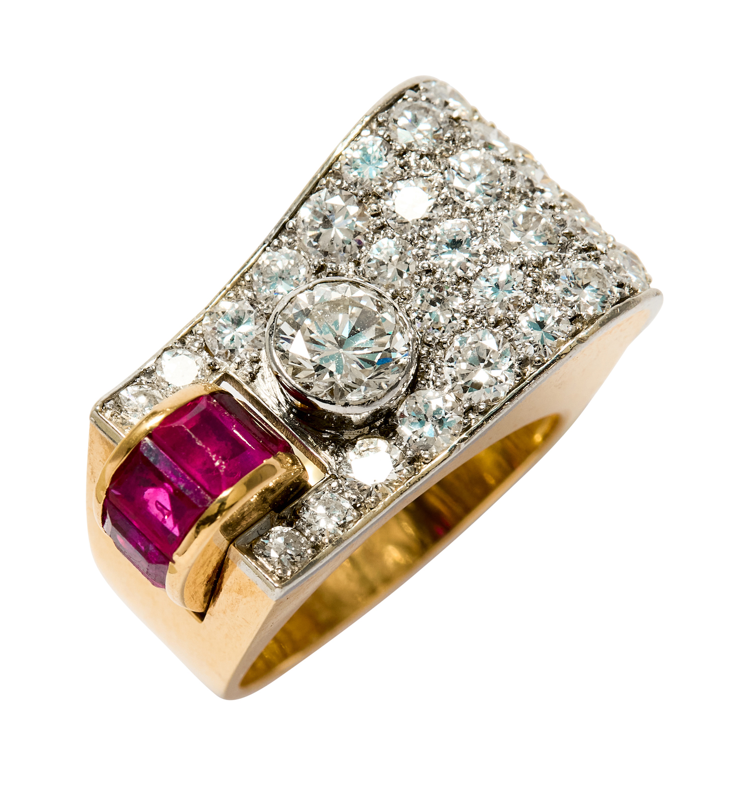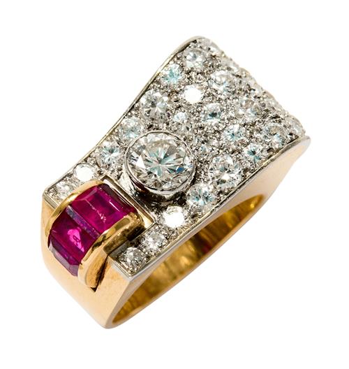 GOLD, DIAMOND AND RUBY RING, CIRCA 1940