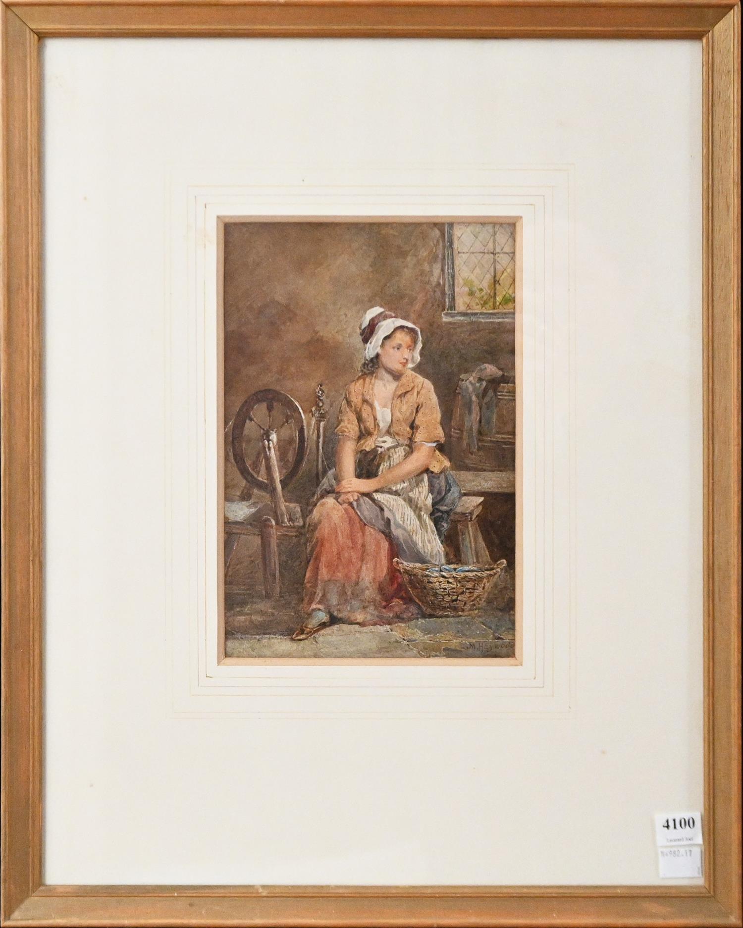 MARY HAYWOOD, SPINNING WHEEL, WATERCOLOUR, SIGNED LOWER RIGHT, 24 X 16CM, FRAME SIZE: 51 X 40.5CM