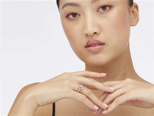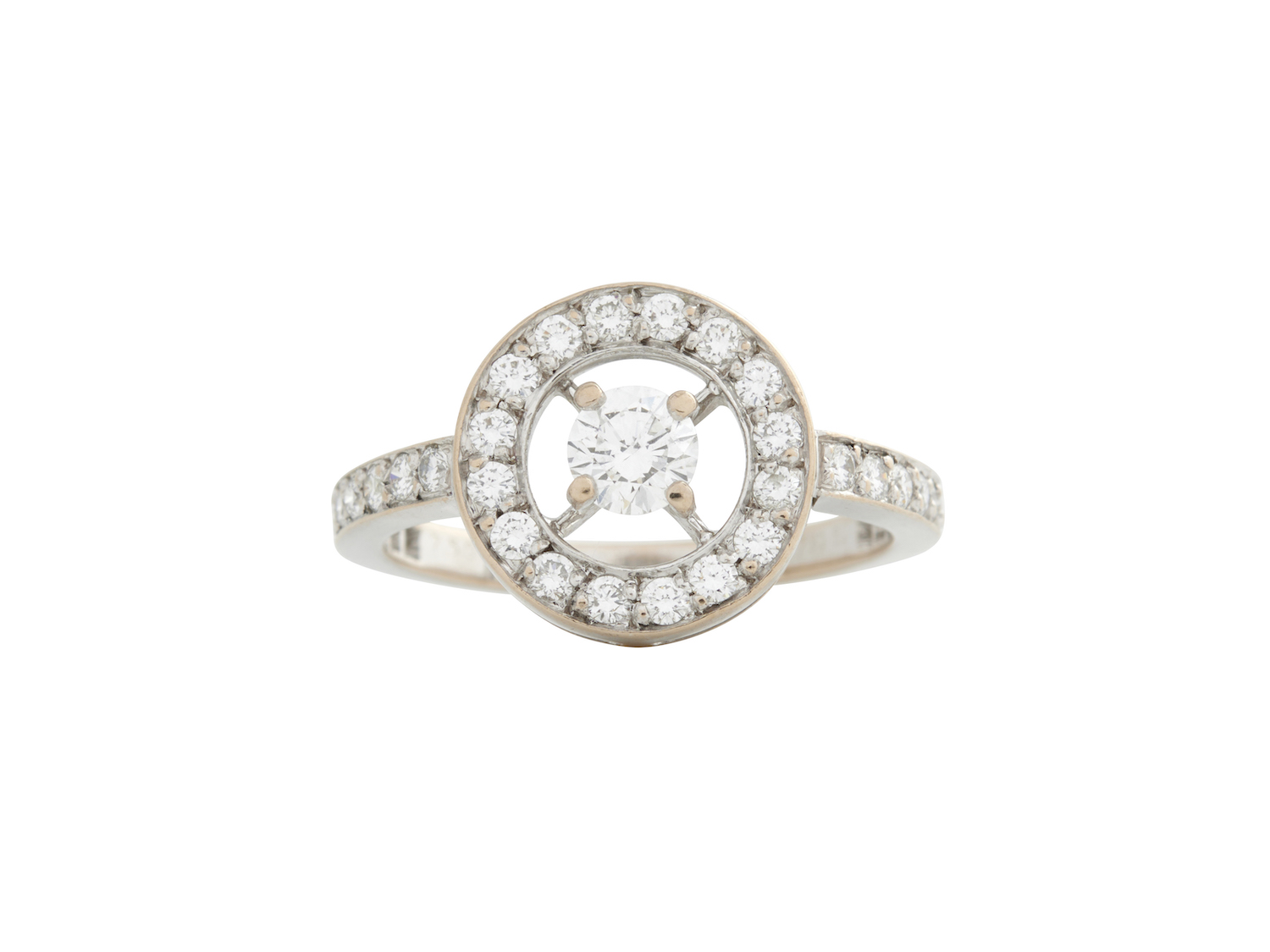 Centring a claw-set brilliant-cut diamond, within an open diamond surround and diamond set shoulders, the diamonds together weighing approximately 1.00 carats, signed Boucheron and numbered C129-30731, size L (51).