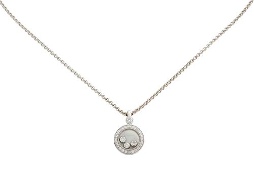 signed Chopard and numbered 793957-1001 6303188, pendant length approximately 16mm, chain length approximately 420mm.