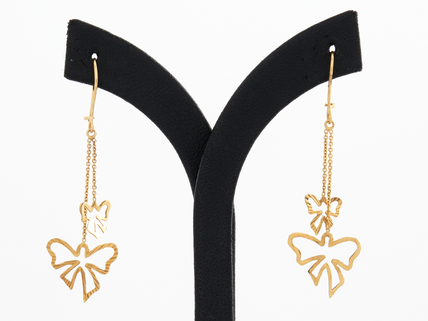 A PAIR OF BOW DROP EARRINGS IN 18CT GOLD, LENGTH 45MM, 1.15GRAMS