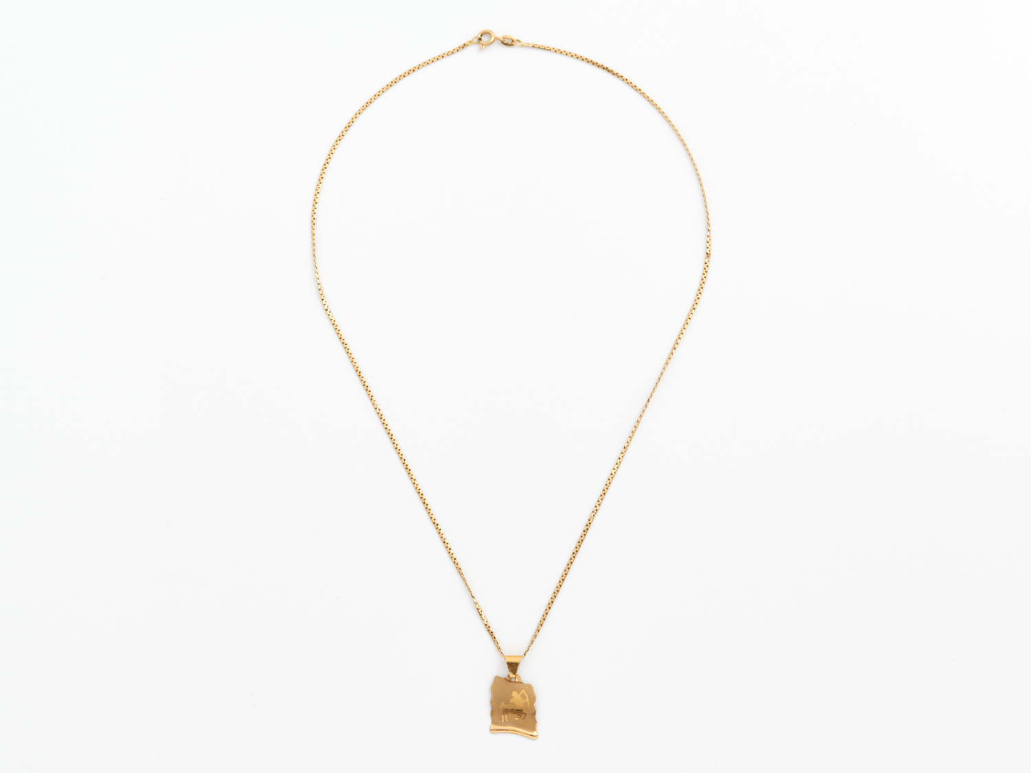A SAGITTARIUS PENDANT IN 22CT GOLD, TO A FINE TRACE CHAIN IN 18CT GOLD, LENGTH 500MM, 4.38GMS