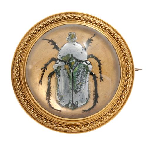The domed reverse intaglio depicting a scarab beetle, within a decorative border, diameter approximately 36mm.