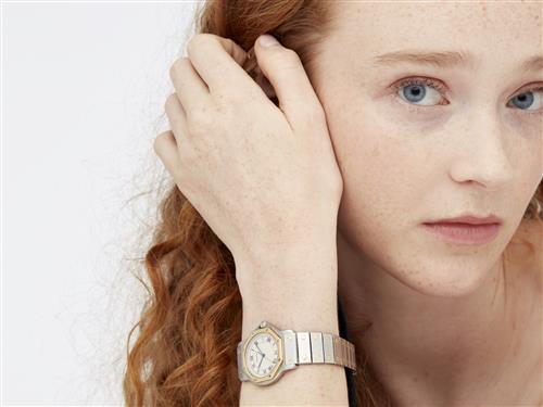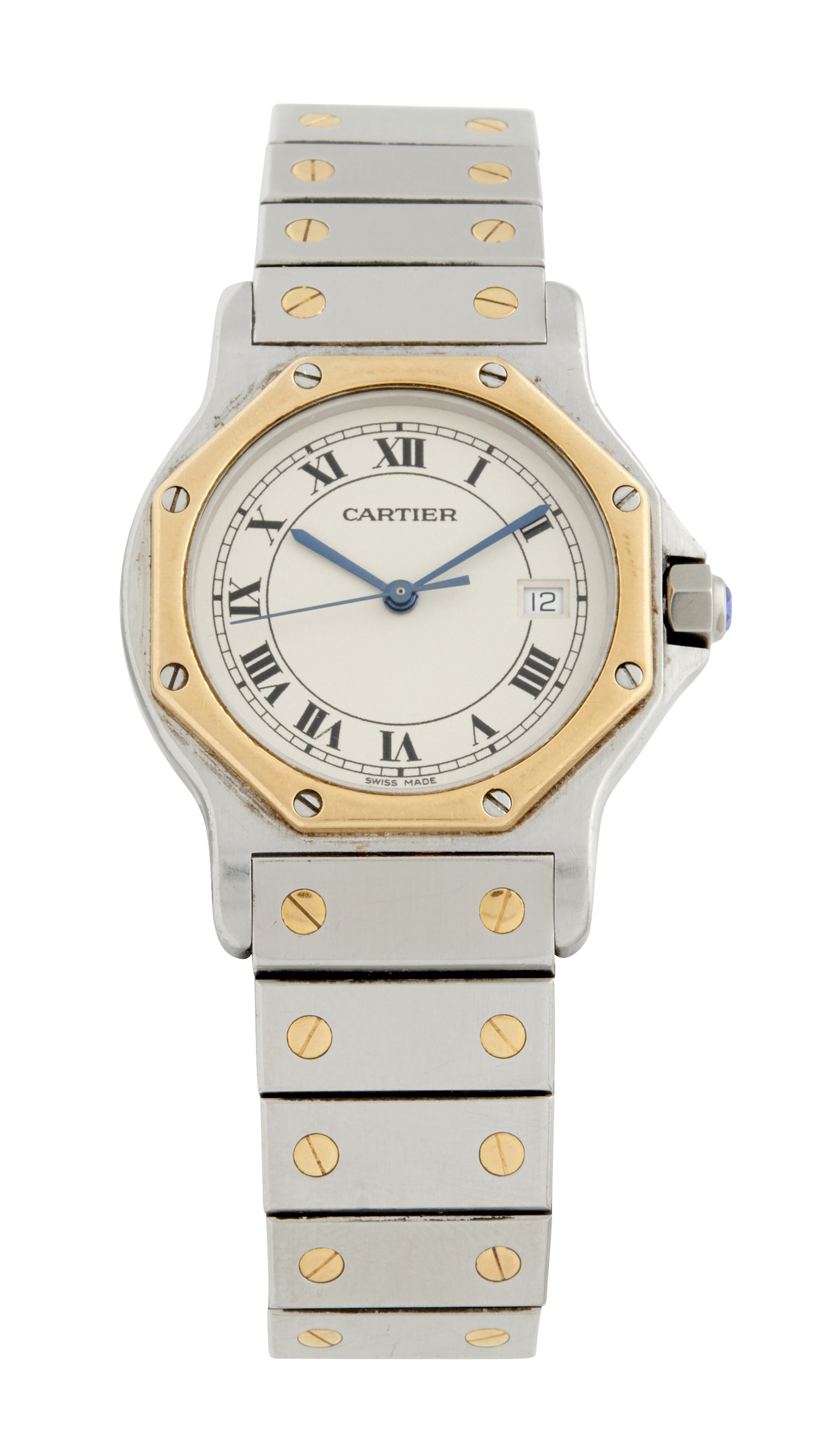 Closure: Cartier fitted stainless steel link with18ct gold rivets and folding clasp