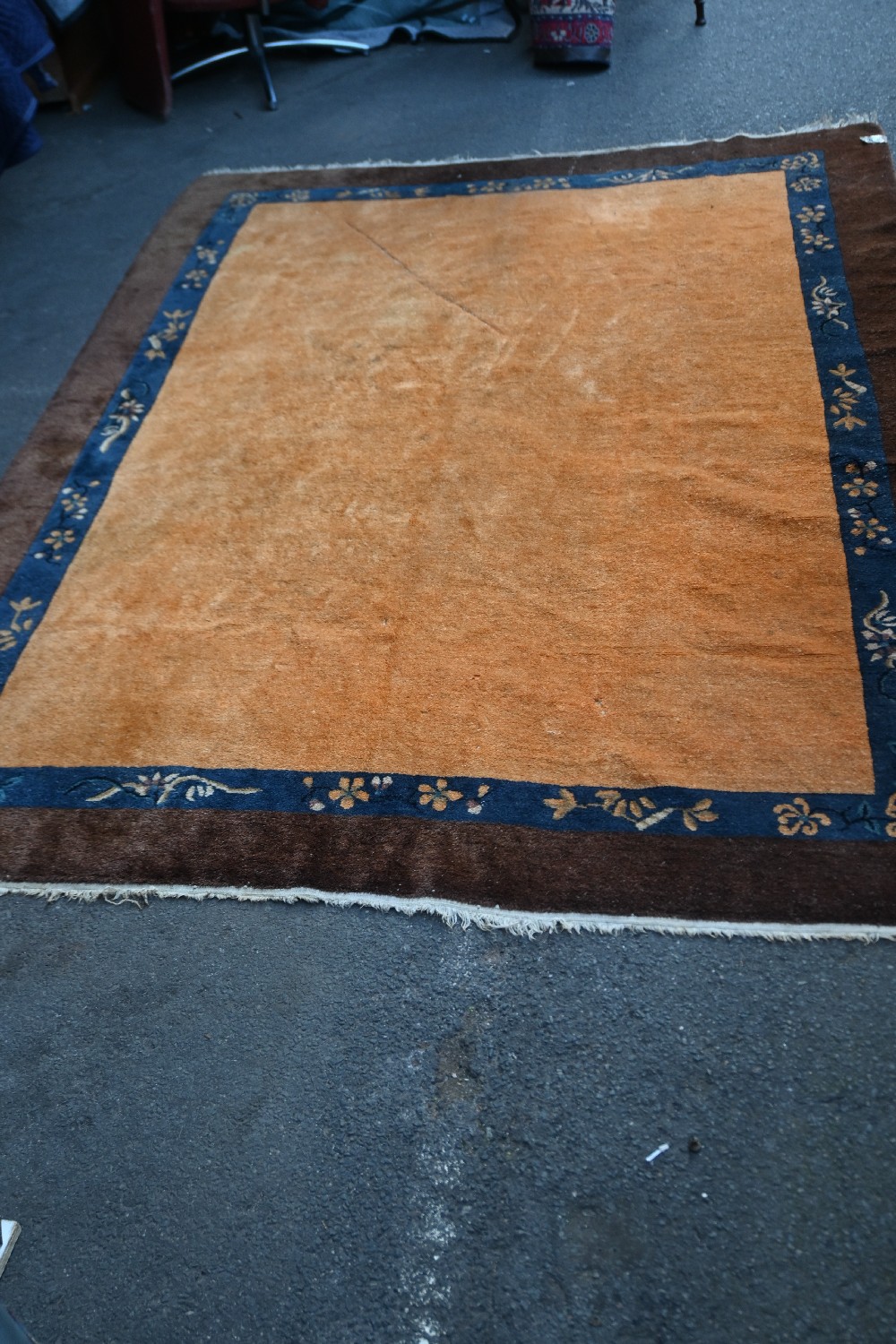 A CHINESE ART DECO RUG (A/F) (273 X 191 CM) (LEONARD JOEL DELIVERY SIZE: X-LARGE)