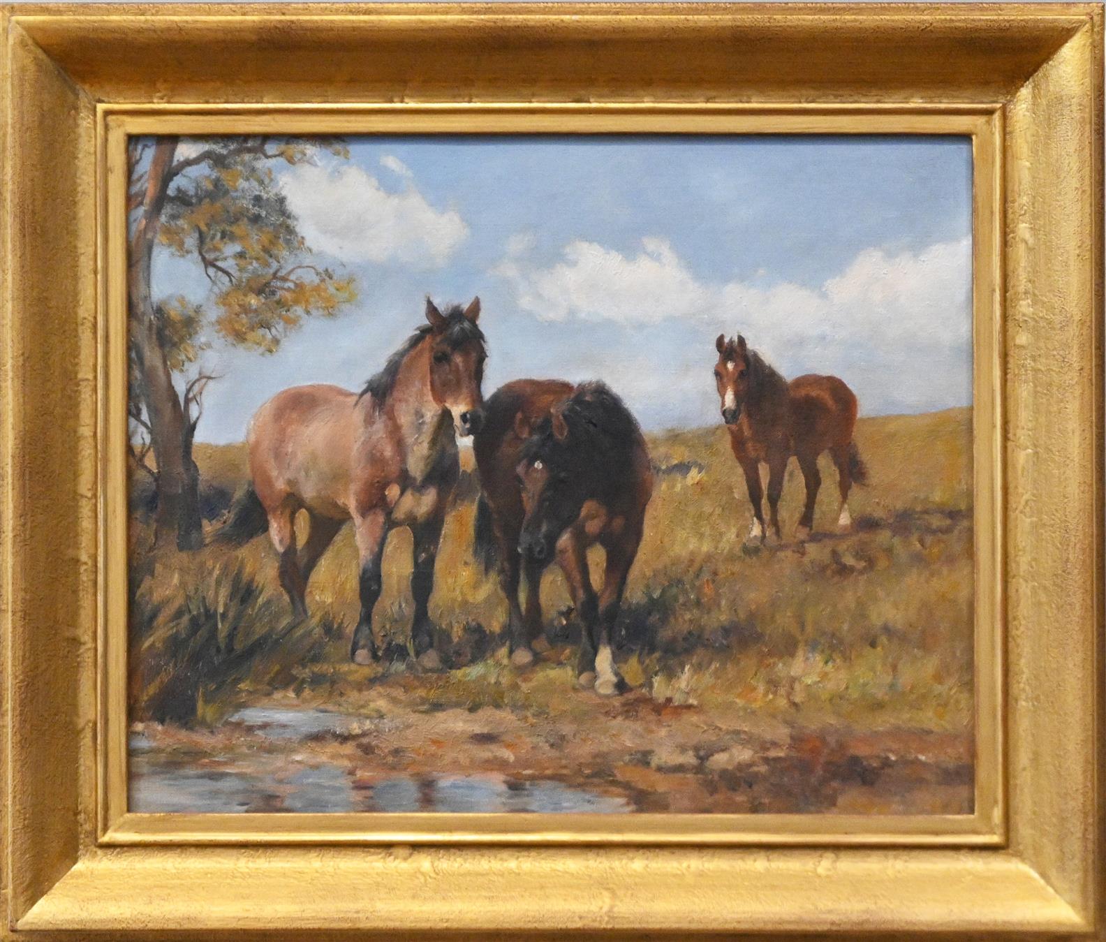 ARTIST UNKNOWN, LANDSCAPE WITH HORSES, OIL ON CANVAS, UNSIGNED, 40 X 49CM, FRAME SIZE: 56 X 66CM