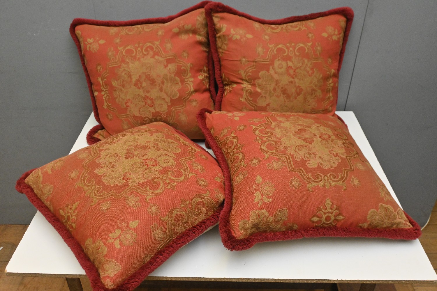 FOUR MATCHING THROW CUSHIONS, EACH WITH BROCADE UPHOLSTERY (LEONARD JOEL DELIVERY SIZE: MEDIUM)