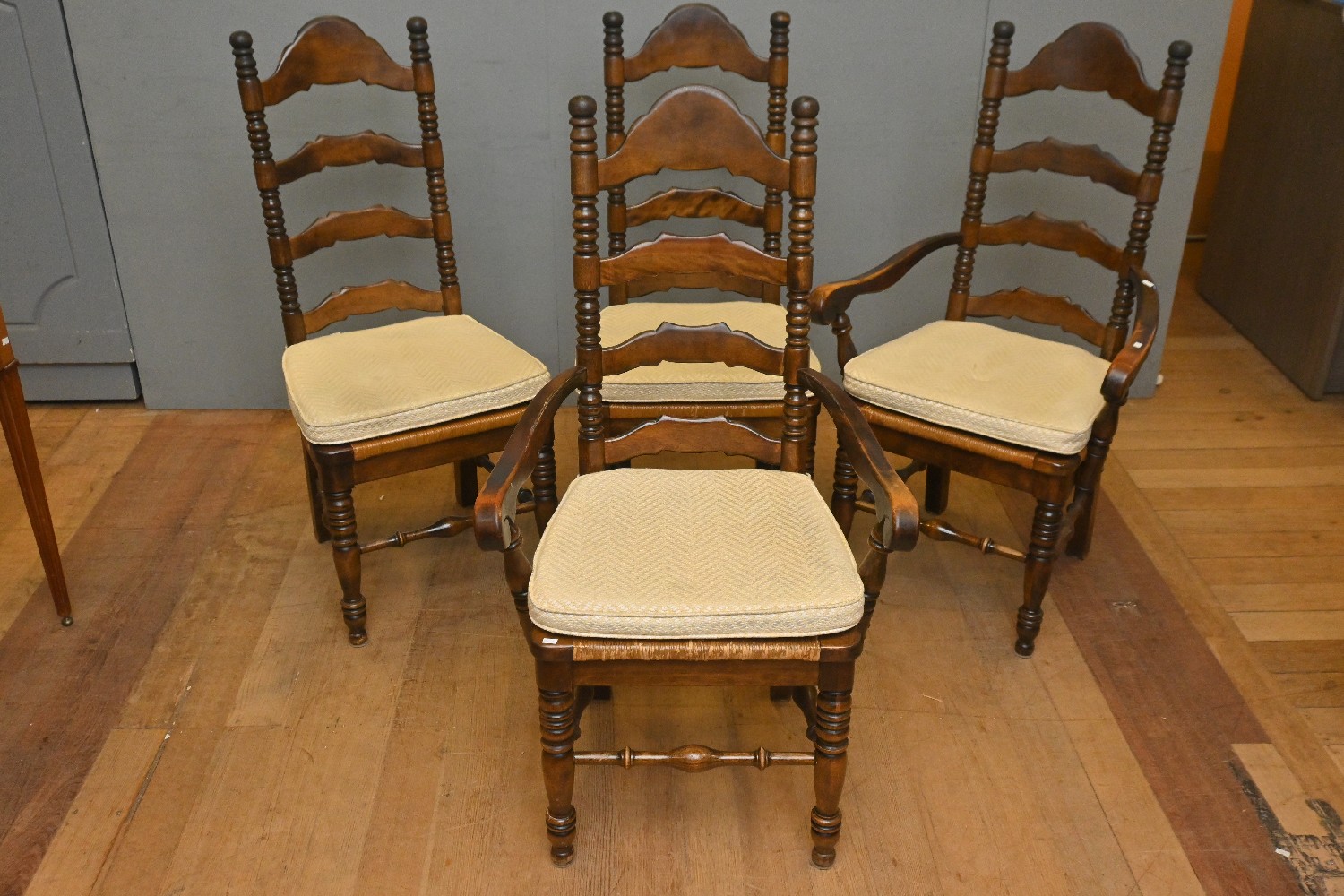 A SET OF FOUR LADDERBACK CHAIRS WITH RATTAN SEATS & PADS (117H X 66W X 60D CM) (LEONARD JOEL DELIVERY SIZE: X-LARGE)