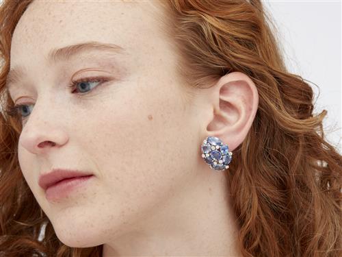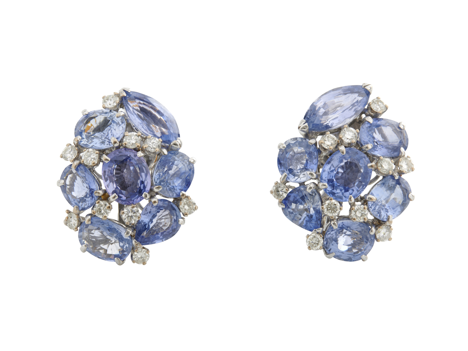 Each earring of cluster design, claw-set with mixed-cut sapphires together weighing approximately 20.07 carats, interspersed with brilliant-cut diamonds together weighing approximately 1.00 carat, to convertible post and clip fittings, unsigned with reference number 355.