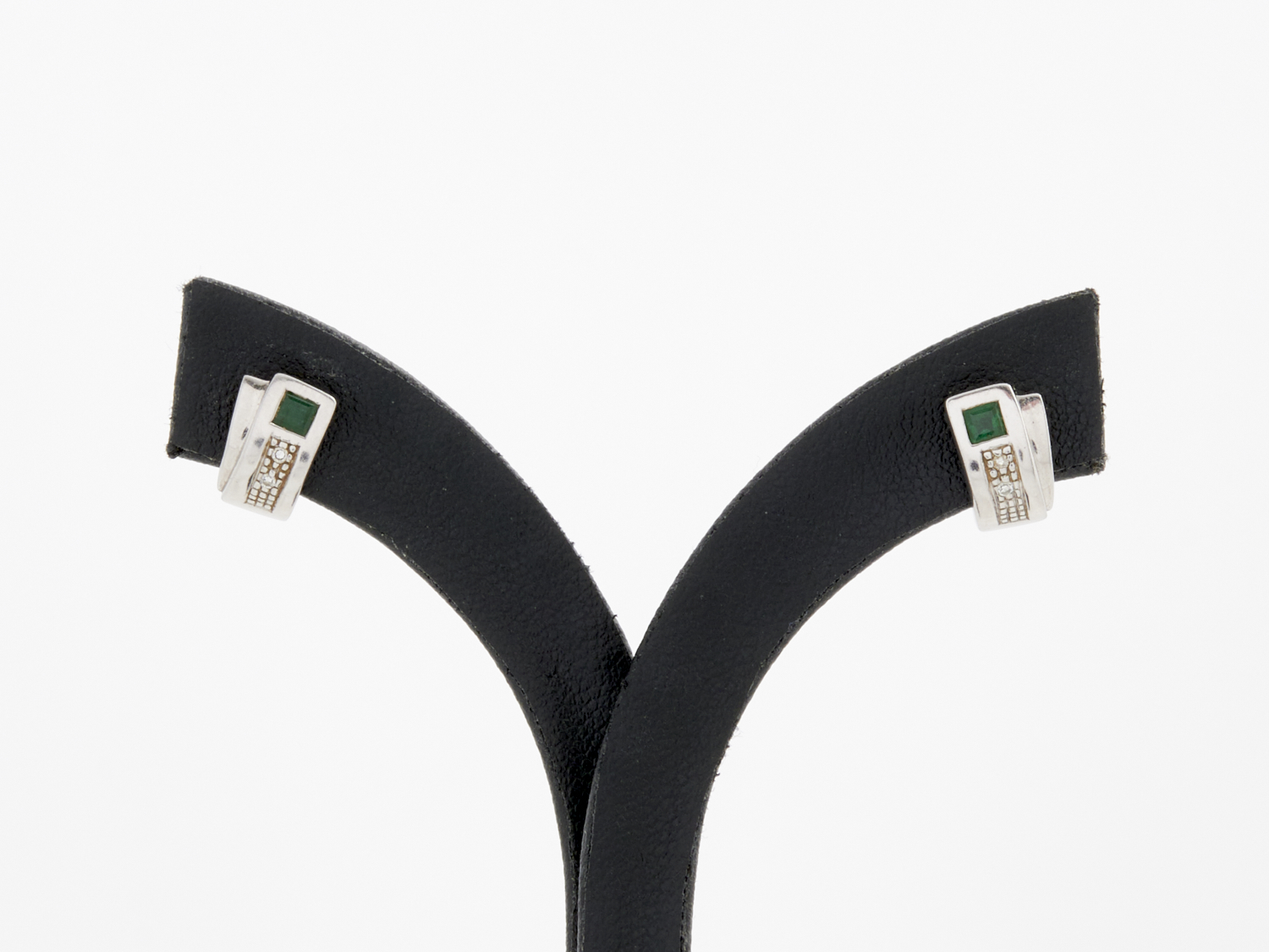 A PAIR OF EMERALD AND DIAMOND EARRINGS IN 9CT WHITE GOLD PAIR, TO POST AND BUTTERFLY FITTINGS, 3.20GRAMS