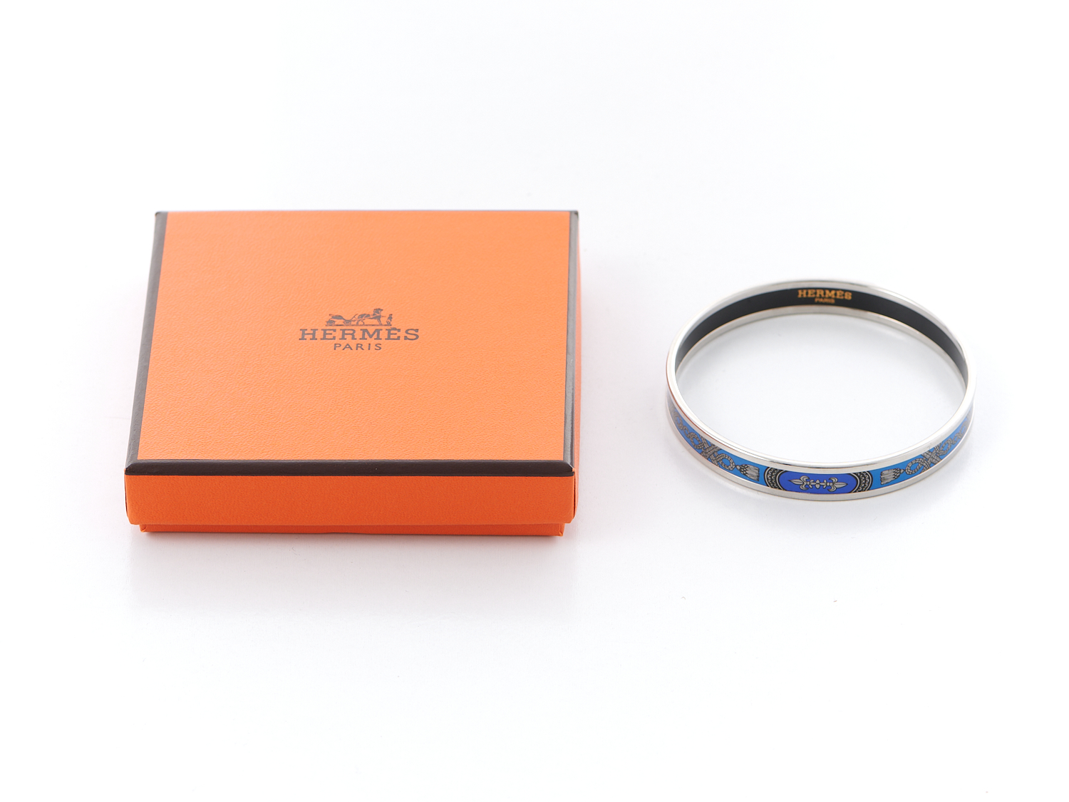 HERMÈS, AN ENAMEL BANGLE, INTERNAL DIAMETER APPROXIMATELY 65MM, SMALL WIDTH, ACCOMPANIED BY ORIGINAL POUCH AND BOX