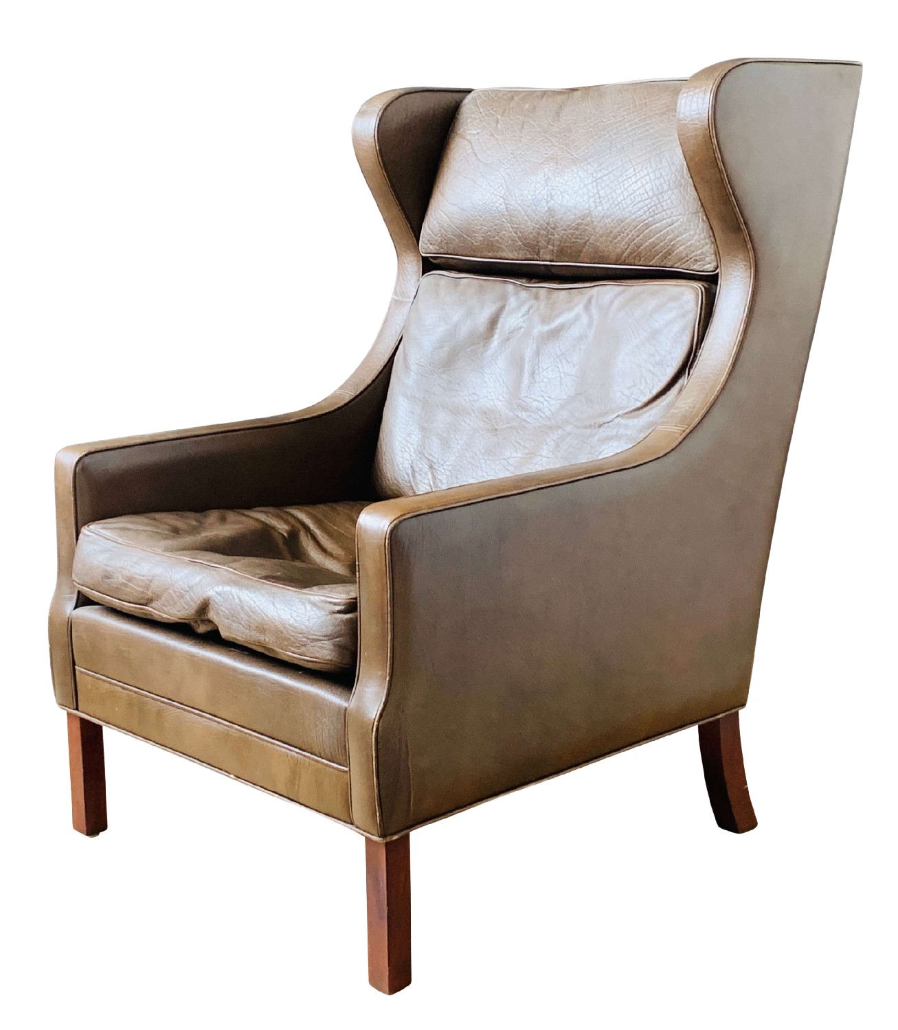 DANISH WINGBACK CHAIR (107H X 73W X 73D CM) (A/F) (LEONARD JOEL DELIVERY SIZE: LARGE)