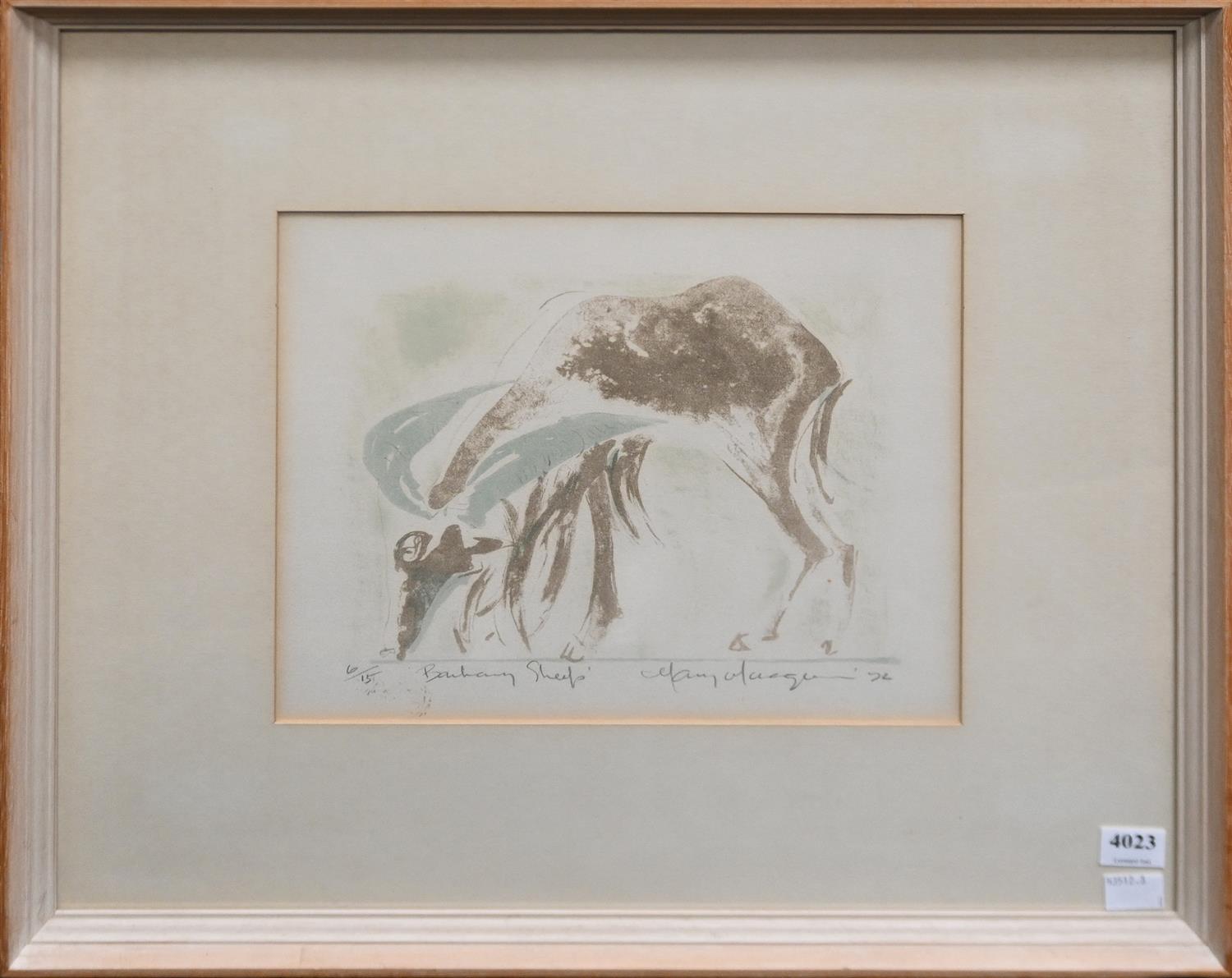 MARY MACQUEEN, BARBARY SHEEP 1976, LITHOGRAPH ED. 6/15, SIGNED, TITLED, DATED AND EDITIONED BELOW IMAGE, 18 X 22CM, FRAME SIZE: 44 X 47CM