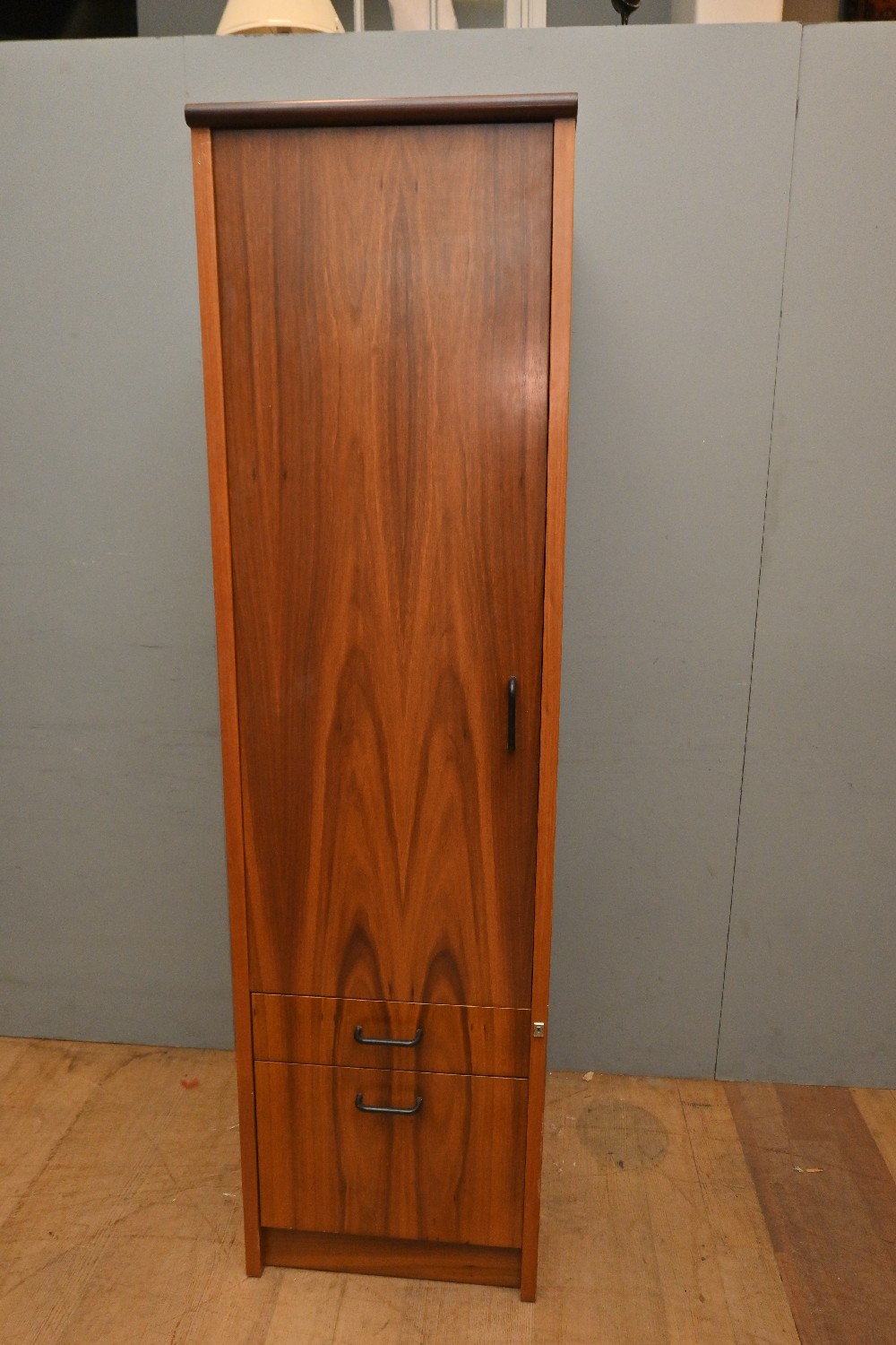 A CONTEMPORARY TWO DRAWER SINGLE DOOR CUPBOARD (A/F) (181H X 49W X 61D CM) (PLEASE NOTE THIS HEAVY ITEM MUST BE REMOVED BY CARRIERS AT THE CUSTOMER'S EXPENSE. LEONARD JOEL STAFF CANNOT ASSIST CARRYING THIS ITEM) (X-LARGE ITEM)