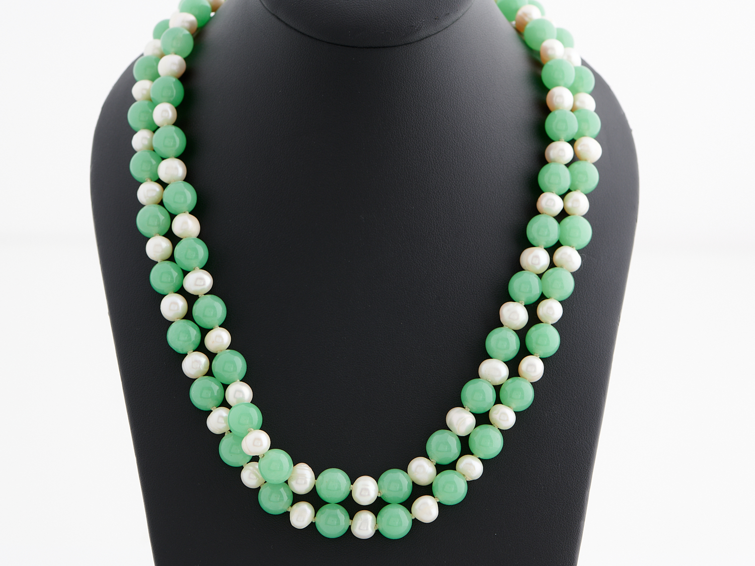 AN OPERA LENGTH JADE AND FRESHWATER PEARL NECKLACE, LENGTH 1580MM