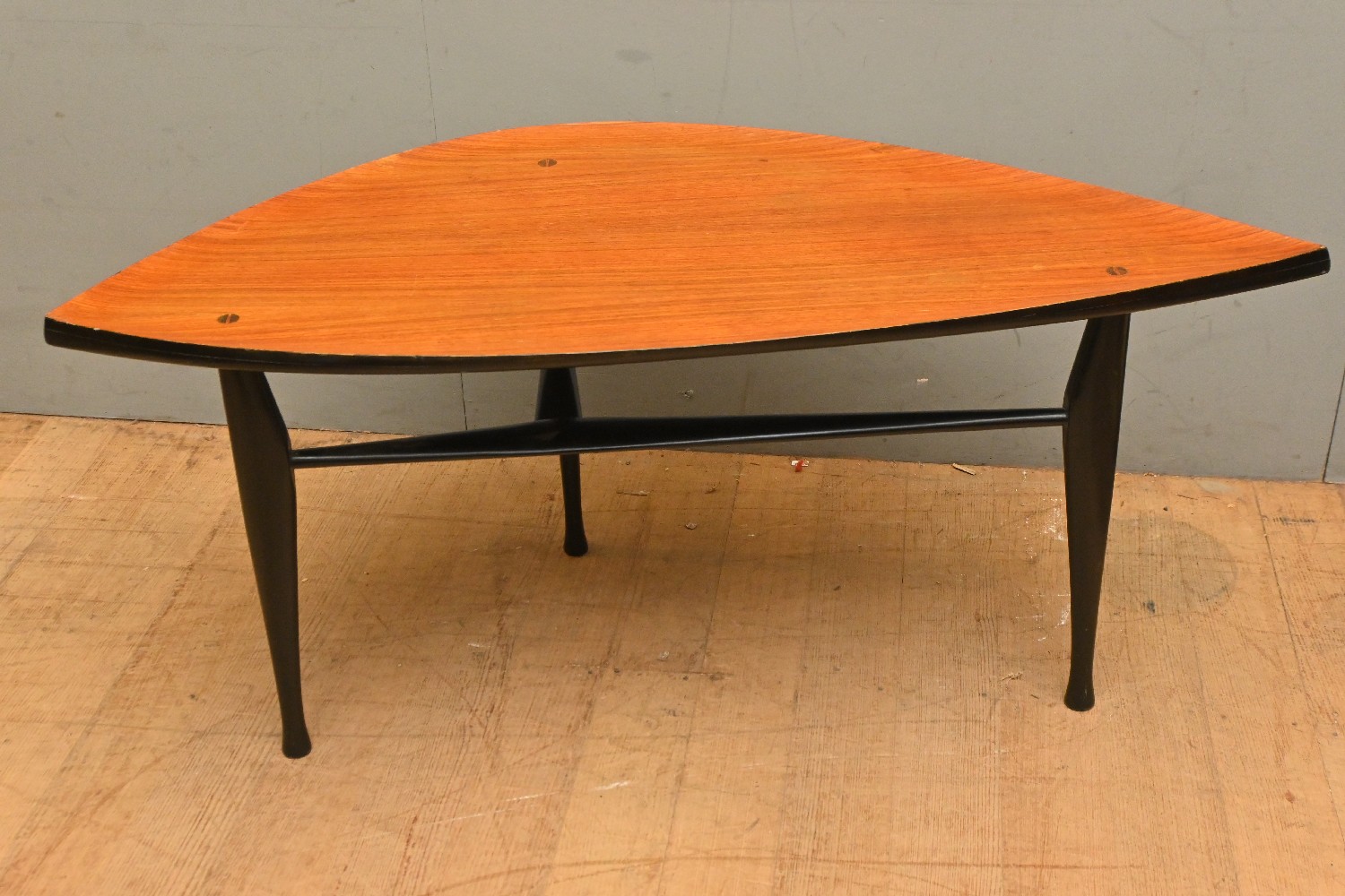 A DANISH 1960S TRI LEGGED COFFEE TABLE (A/F) (52H X 117W X 53D CM) (LEONARD JOEL DELIVERY SIZE: LARGE)