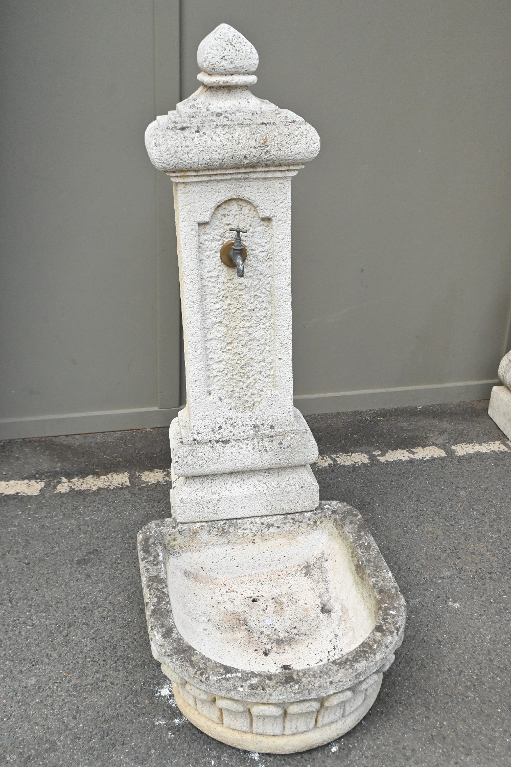 A 19TH CENTURY FRENCH RECONSTITUTED STONE TWO PIECE WATER FOUNTAIN (A/F) (123H X 50W X 69D CM) (PLEASE NOTE THIS HEAVY ITEM MUST BE REMOVED BY CARRIERS AT THE CUSTOMER'S EXPENSE. LEONARD JOEL STAFF CANNOT ASSIST CARRYING THIS ITEM) (X-LARGE ITEM)
