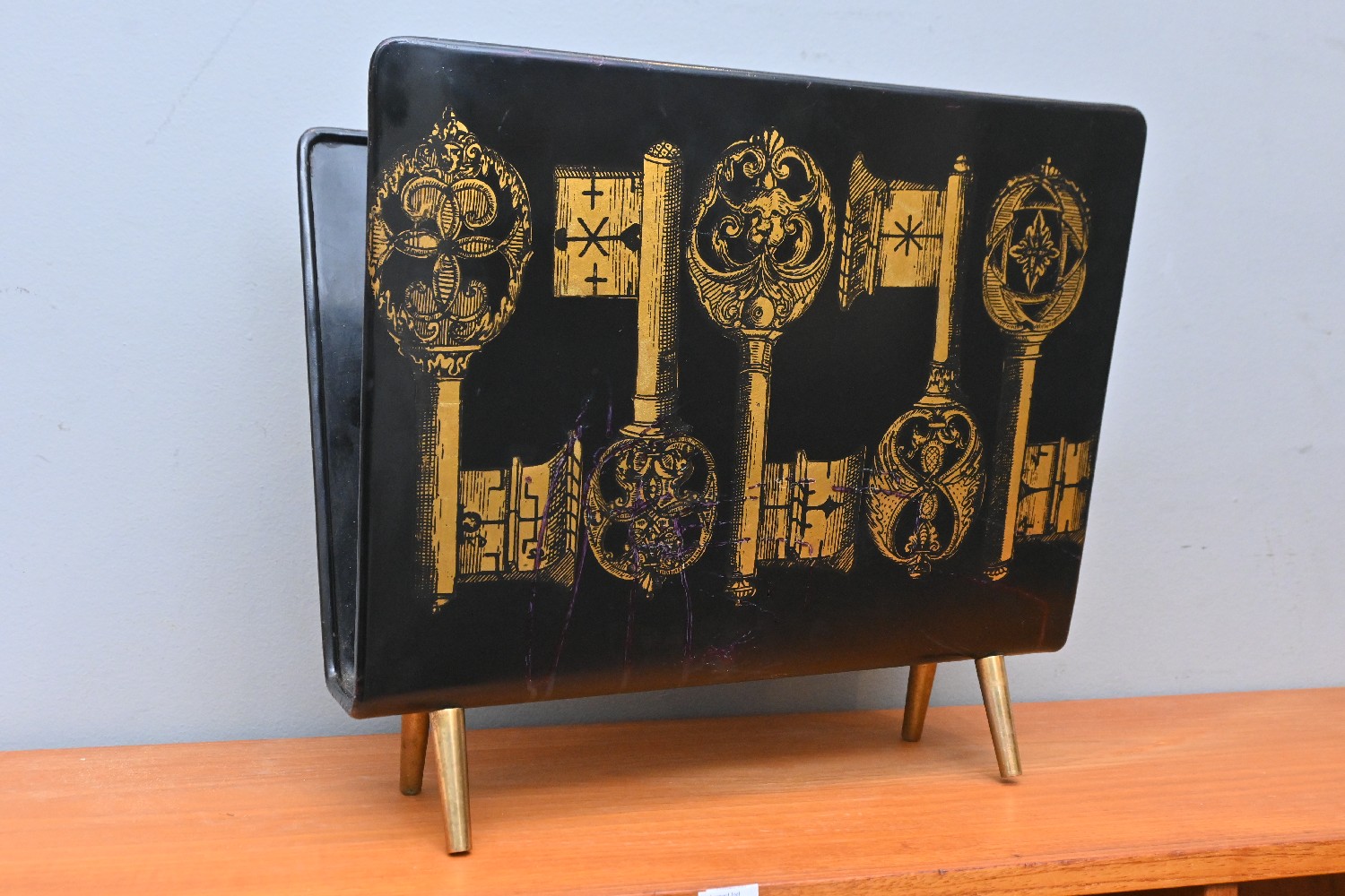 AN ITALIAN MAGAZINE TROUGH IN THE MANNER OF FORNASETTI (A/F) (34CM H X 43W X 22D CM) (LEONARD JOEL DELIVERY SIZE: MEDIUM)