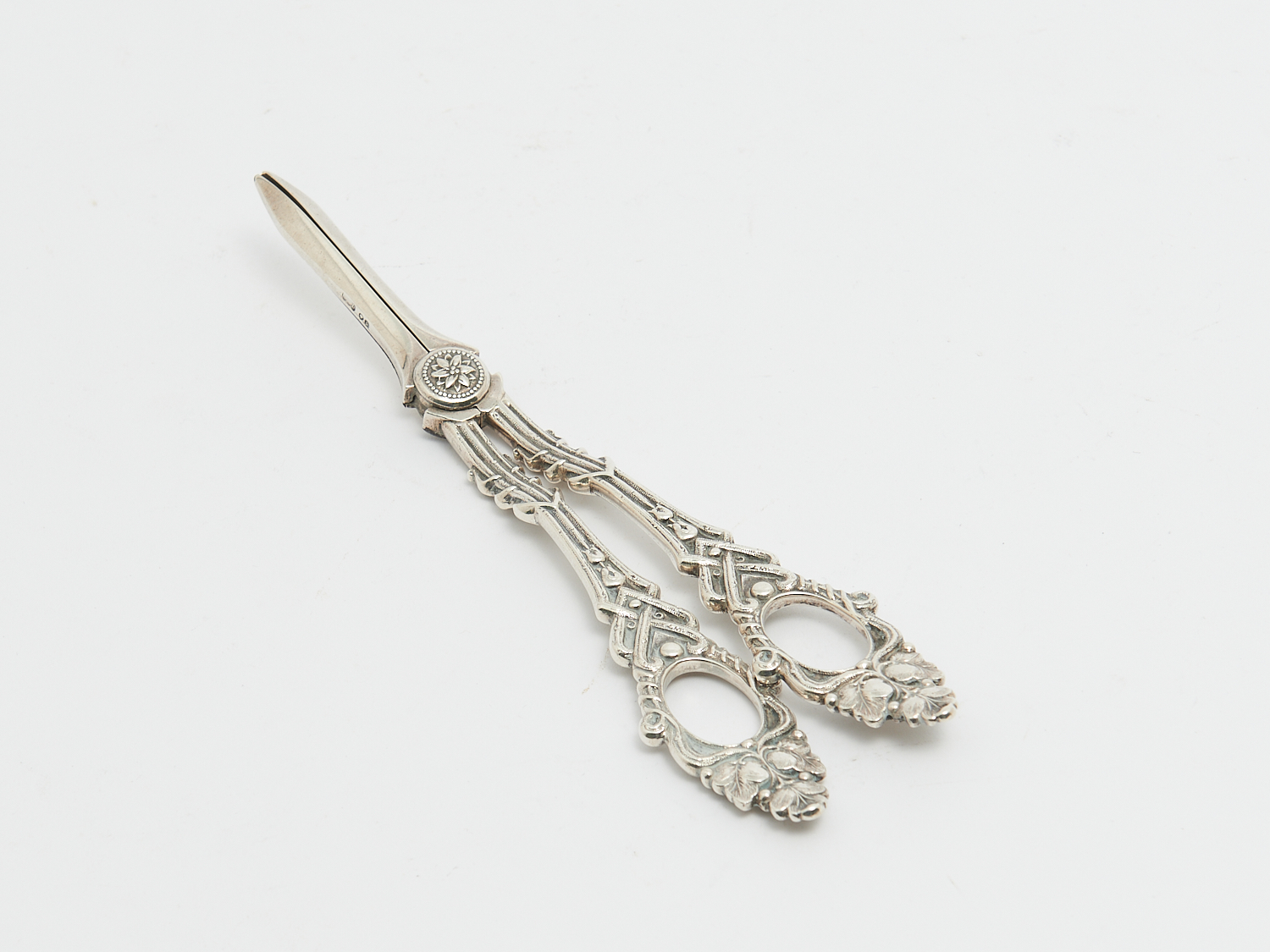 A SET OF VICTORIAN STERLING SILVER HANDLED GRAPE SCISSORS, BIRMINGHAM 1880, L.19CM, LEONARD JOEL LOCAL DELIVERY: SMALL
