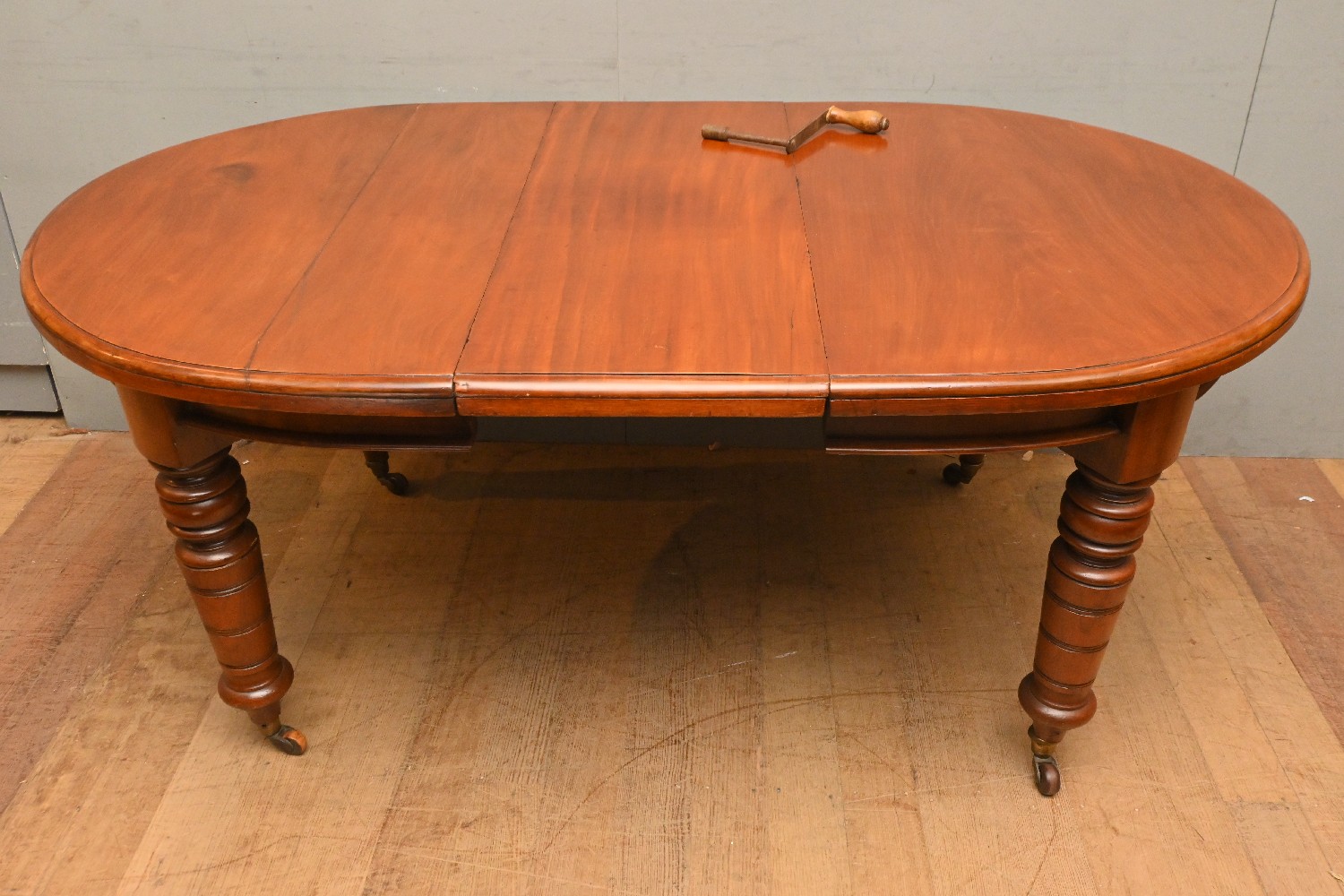 A VICTORIAN OVAL EXTENSION DINING TABLE WITH ONE LEAF (73H X 173 EXTENDED WIDTH X 134 UNEXTENDED WIDTH X 107D CM) (PLEASE NOTE THIS HEAVY ITEM MUST BE REMOVED BY CARRIERS AT THE CUSTOMER'S EXPENSE. LEONARD JOEL STAFF CANNOT ASSIST CARRYING THIS ITEM) (X-LARGE ITEM)
