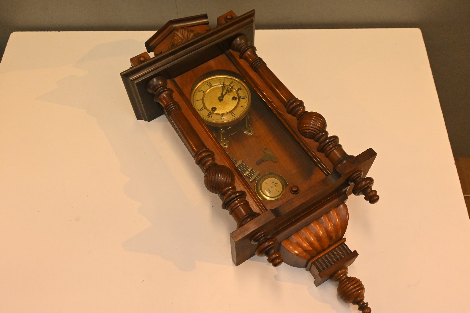 AN EARLY 20TH CENTURY GERMAN SPRING DRIVEN WALL CLOCK (A/F) (82H X 37W X 17D CM) (LEONARD JOEL DELIVERY SIZE: MEDIUM)