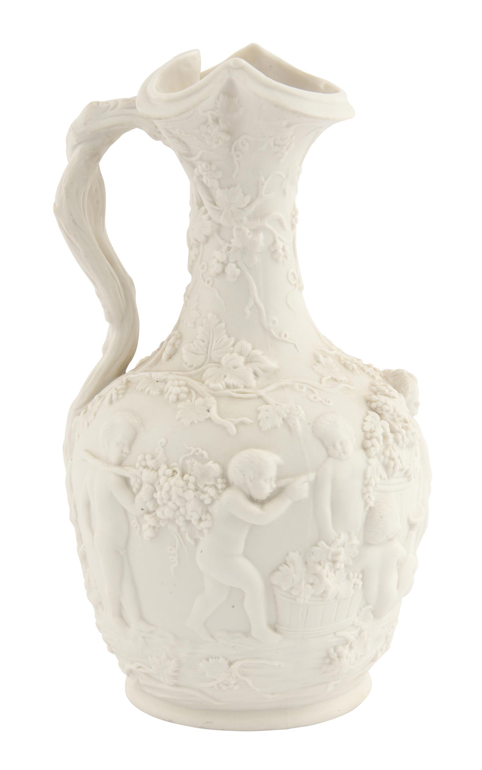 A COPELAND PARIAN WARE RELIEF MOULDED BACCHANALIAN JUG H.28CM, LEONARD JOEL LOCAL DELIVERY: SMALL.