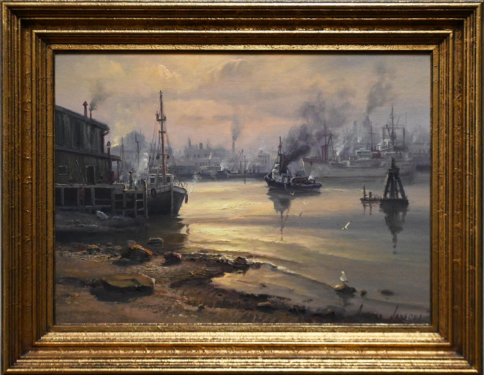 ANDRIS JANSONS, ACTIVE MORNING 1984, OIL ON CANVASBOARD, SIGNED LOWER RIGHT, 39 X 54CM, FRAME SIZE: 54 X 69.5CM