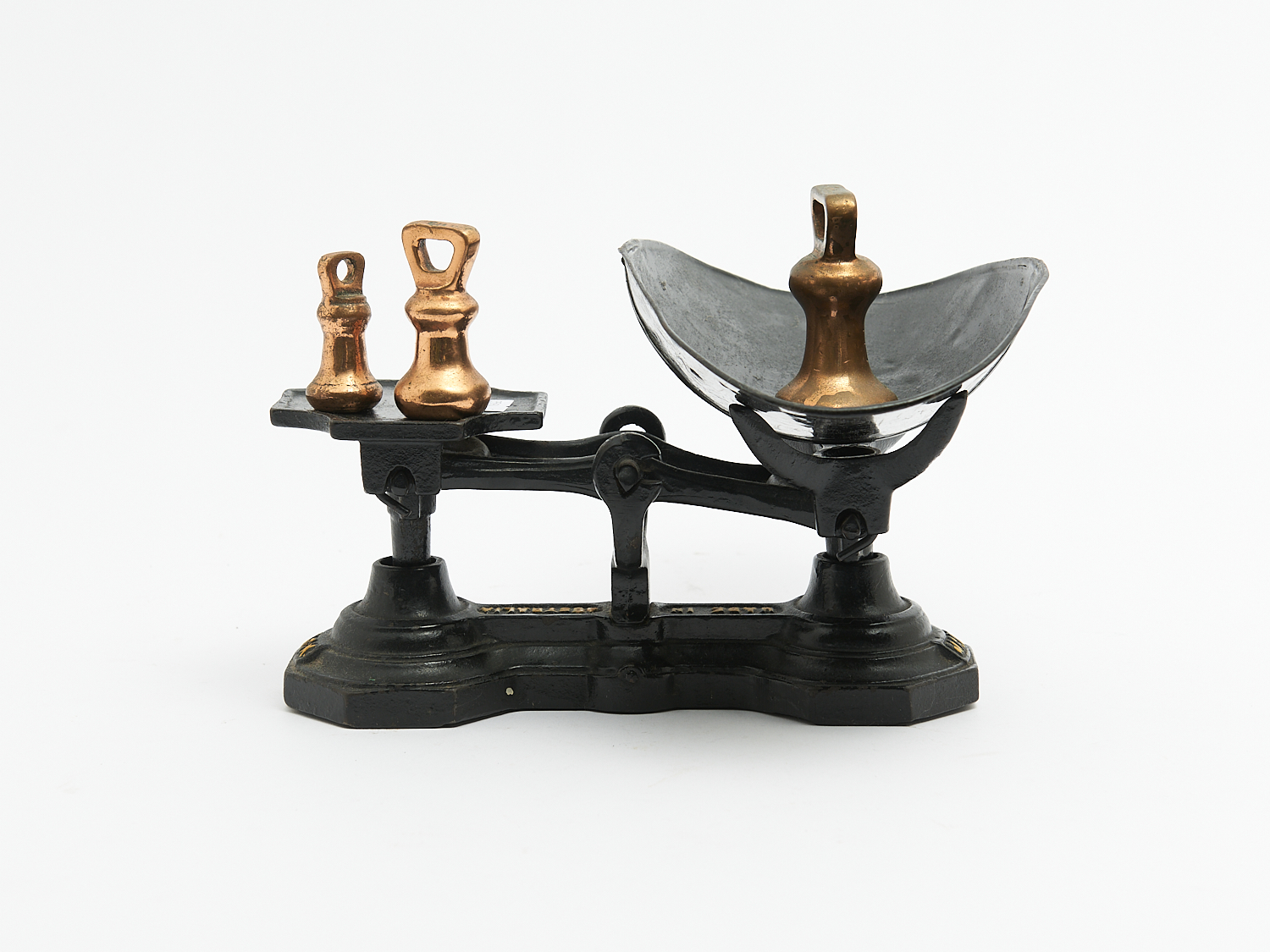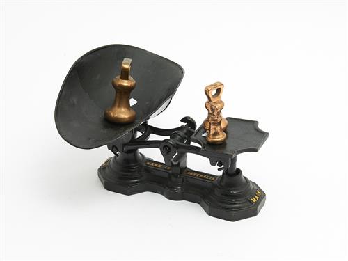A SET OF CAST IRON 'MACK' MARKET SCALES L.29CM, LEONARD JOEL LOCAL DELIVERY: SMALL