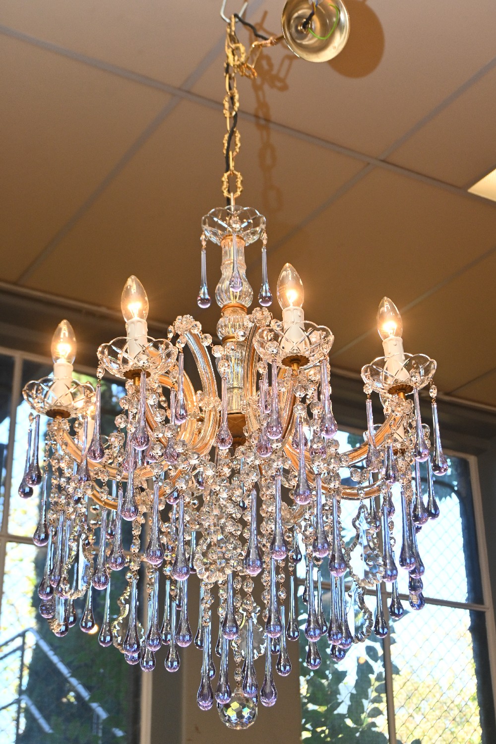 AN EIGHT BRANCH VENETIAN MARIE TERESE ALEXANDRITE MURANO CHANDELIER (72H X 66DIA CM) (PLEASE NOTE THIS HEAVY ITEM MUST BE REMOVED BY CARRIERS AT THE CUSTOMER'S EXPENSE. LEONARD JOEL STAFF CANNOT ASSIST CARRYING THIS ITEM) (X-LARGE ITEM)