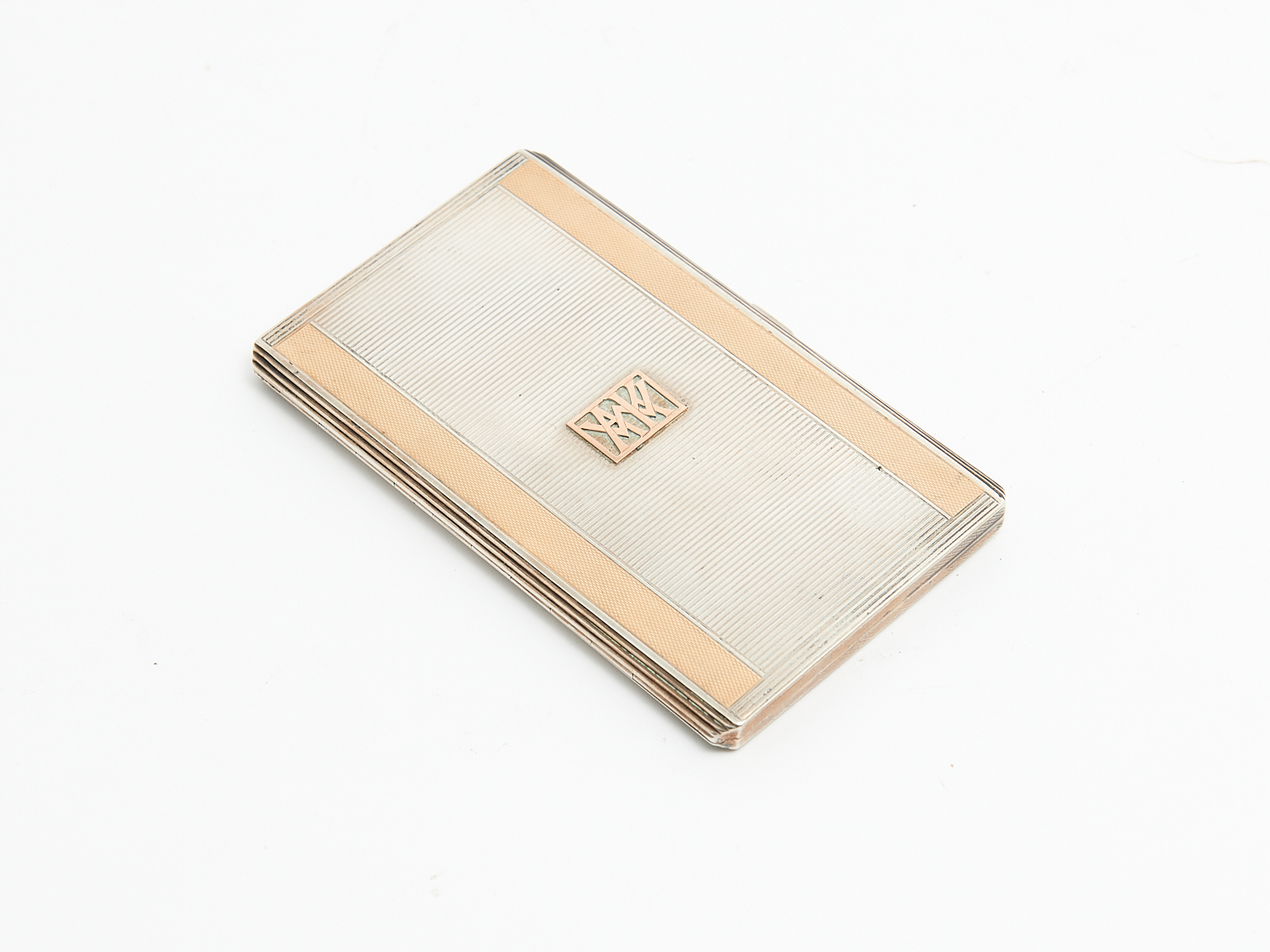 AN AUSTRALIAN STERLING SILVER AND 9CT GOLD PLATED CARD CASE, SIGNED INSIDE BY FRANK LEADY OF THE PHILIPS COMPANY W.14CM, 226G, LEONARD JOEL LOCAL DELIVERY: SMALL