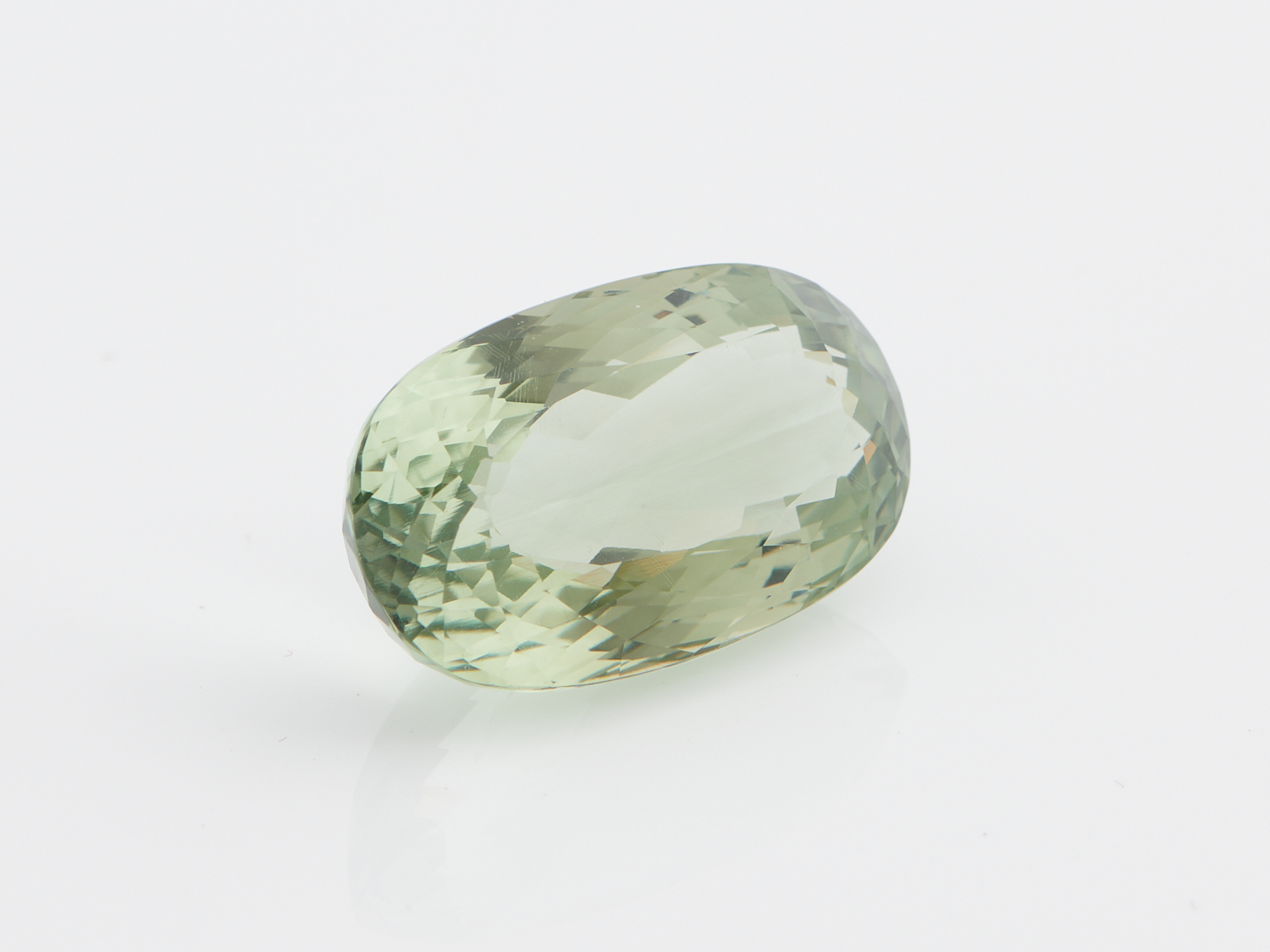 A GREEN AMETHYST (PRASIOLITE) OF 45.45CT, VVS, 28.8 X 17 X 13.4MM