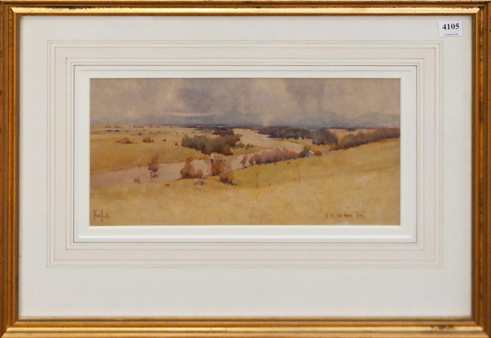 FRED LEIST, LANDSCAPE, WATERCOLOUR, SIGNED LOWER LEFT, 16.5 X 33CM, FRAME SIZE: 38 X 52CM