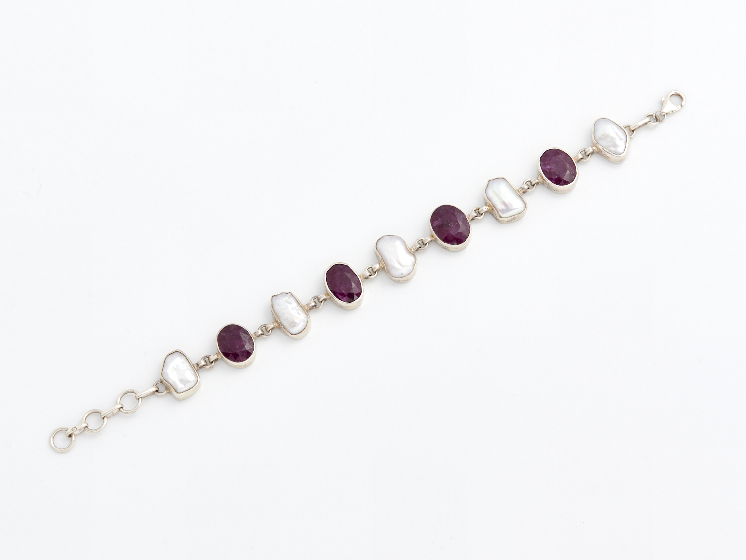 A PEARL AND RUBY SET BRACELET IN SILVER, 215MM
