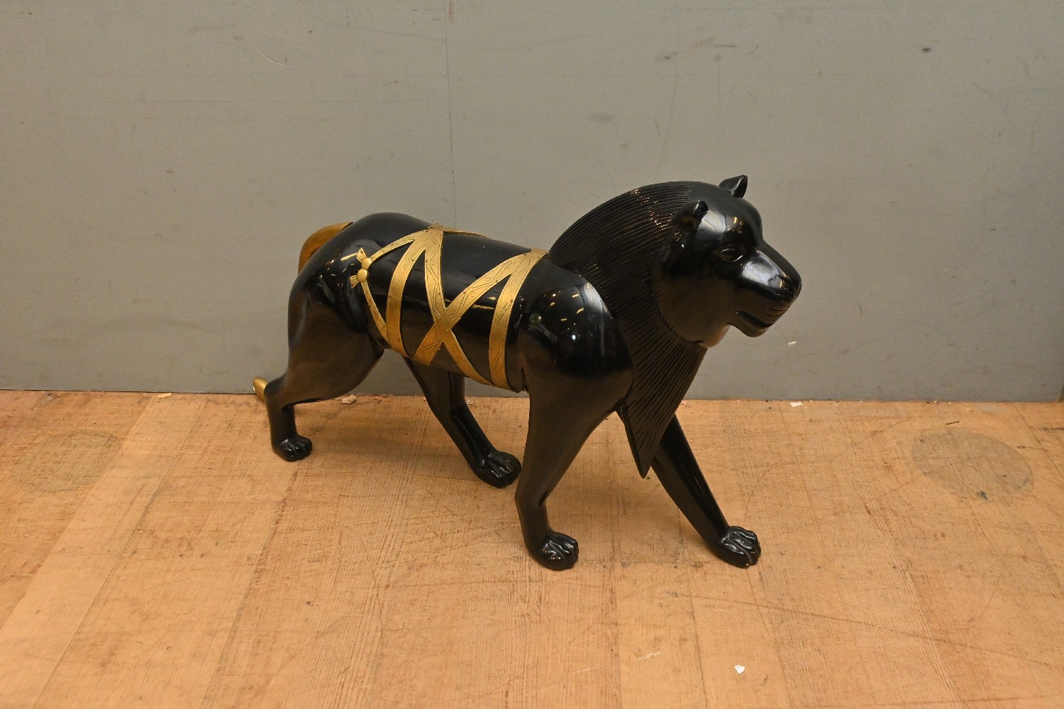 A RESIN AND BRASS EFFECT PANTHER SCULPTURE (60H X 104W X 26D CM) (LEONARD JOEL DELIVERY SIZE: LARGE)