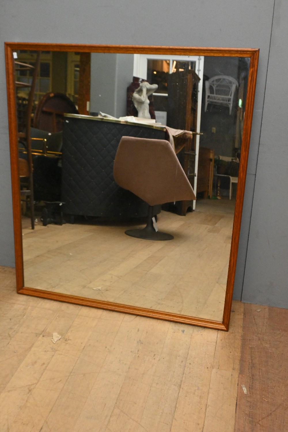 A LARGE MIRROR WITH OAK FRAME (A/F) (117H X 104W CM) (LEONARD JOEL DELIVERY SIZE: LARGE)
