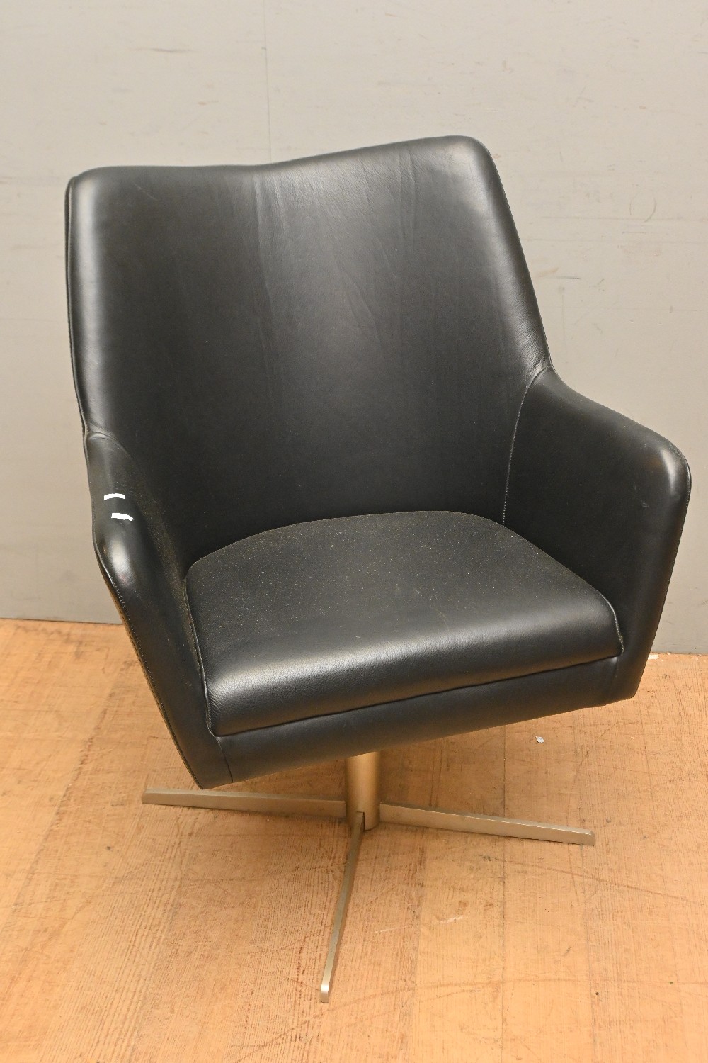 A LEATHER & CHROME ARMCHAIR BY ADON ROYAL LINE DENMARK (87H X 66W X 66D CM) (LEONARD JOEL DELIVERY SIZE: LARGE)