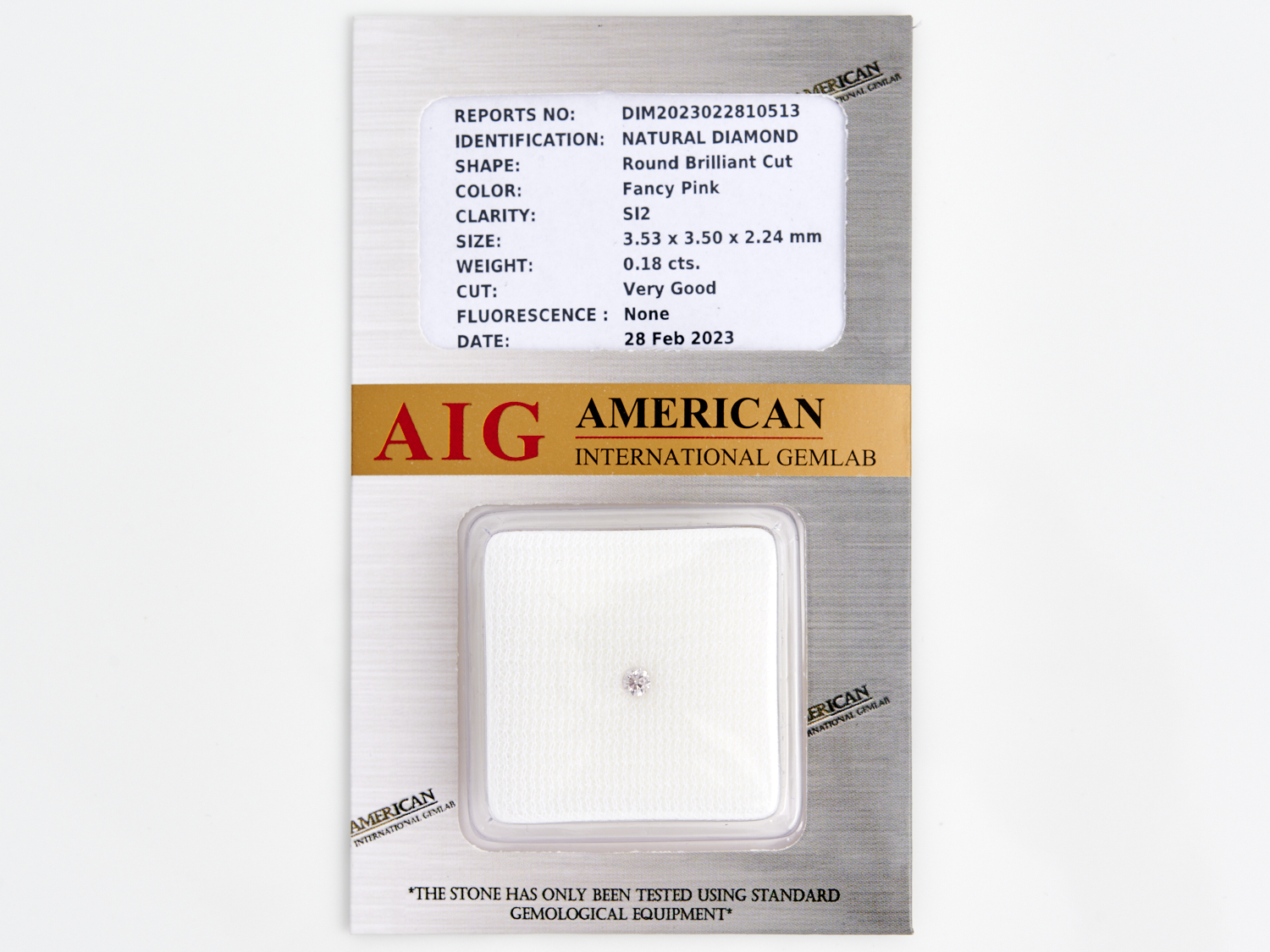 A NATURAL PINK DIAMOND OF 0.18CTS SI, AIG SEALED