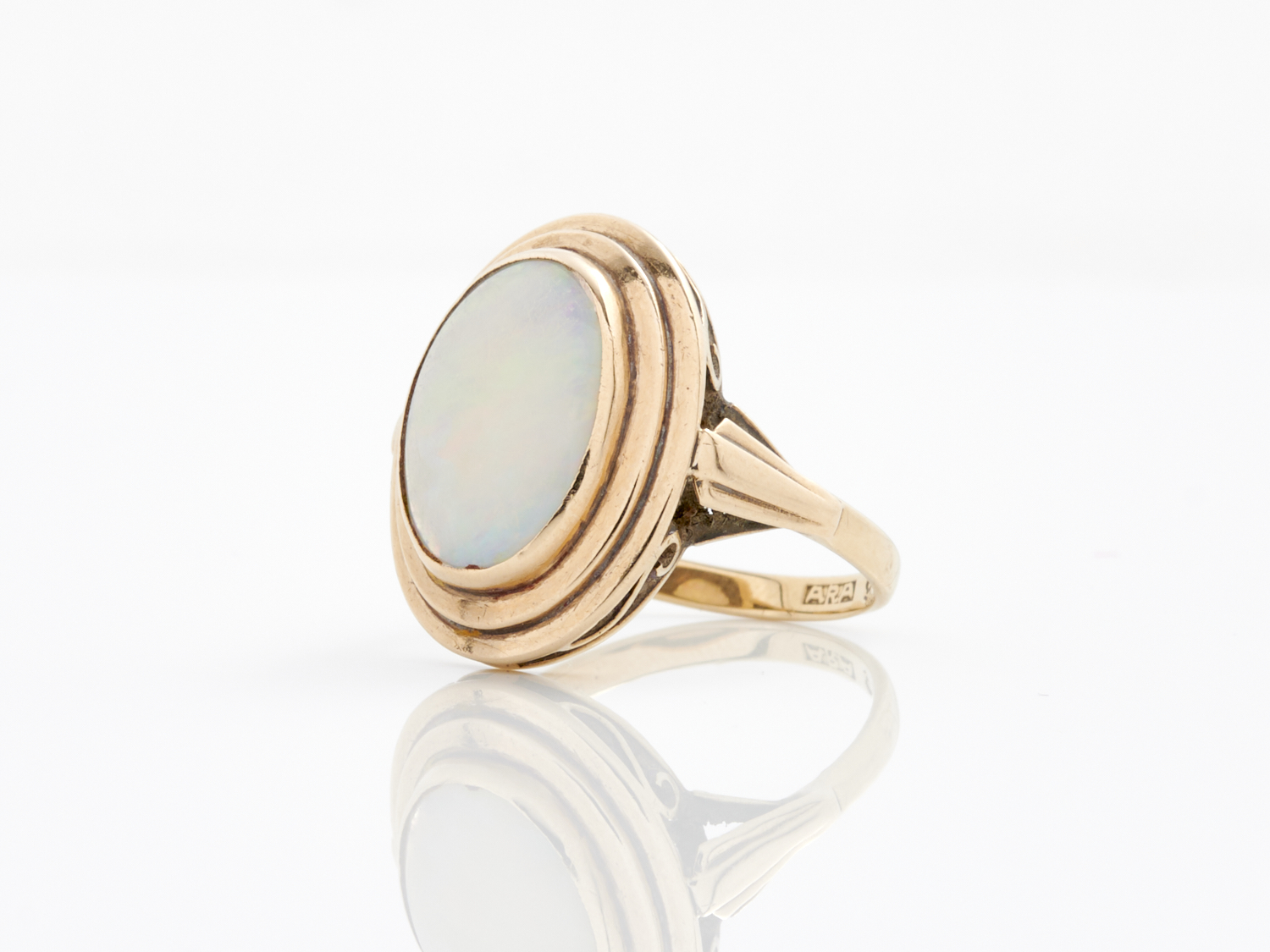 AN OPAL RING IN 9CT GOLD, SIZE N, 4.0GMS