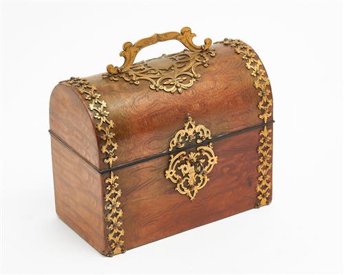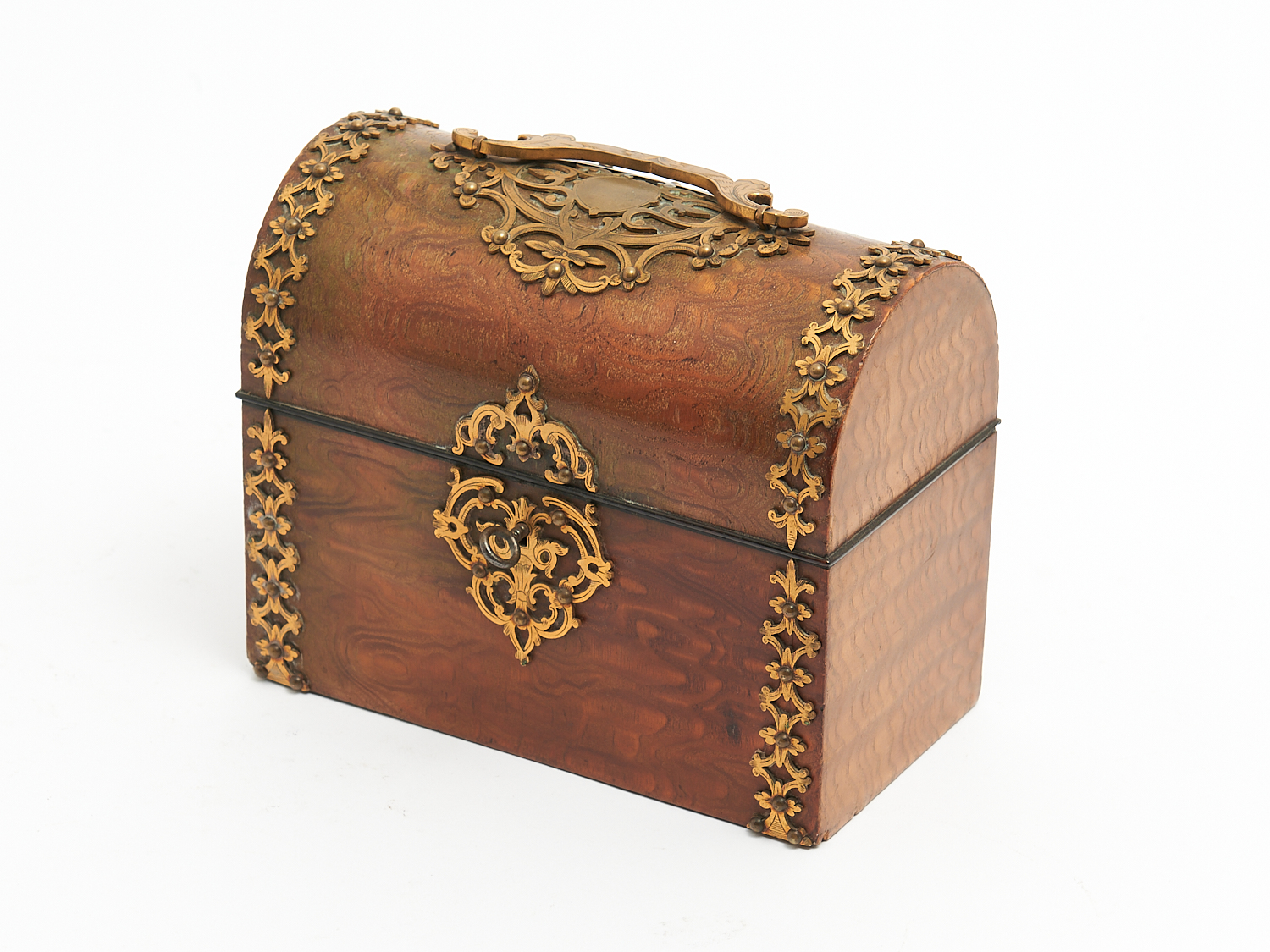 A LATE VICTORIAN BRASS-MOUNTED TAMO ASH TRAVELLING CADDY, WITH ASPREY LONDON IVORINE LABEL H.15CM, LEONARD JOEL LOCAL DELIVERY: SMALL