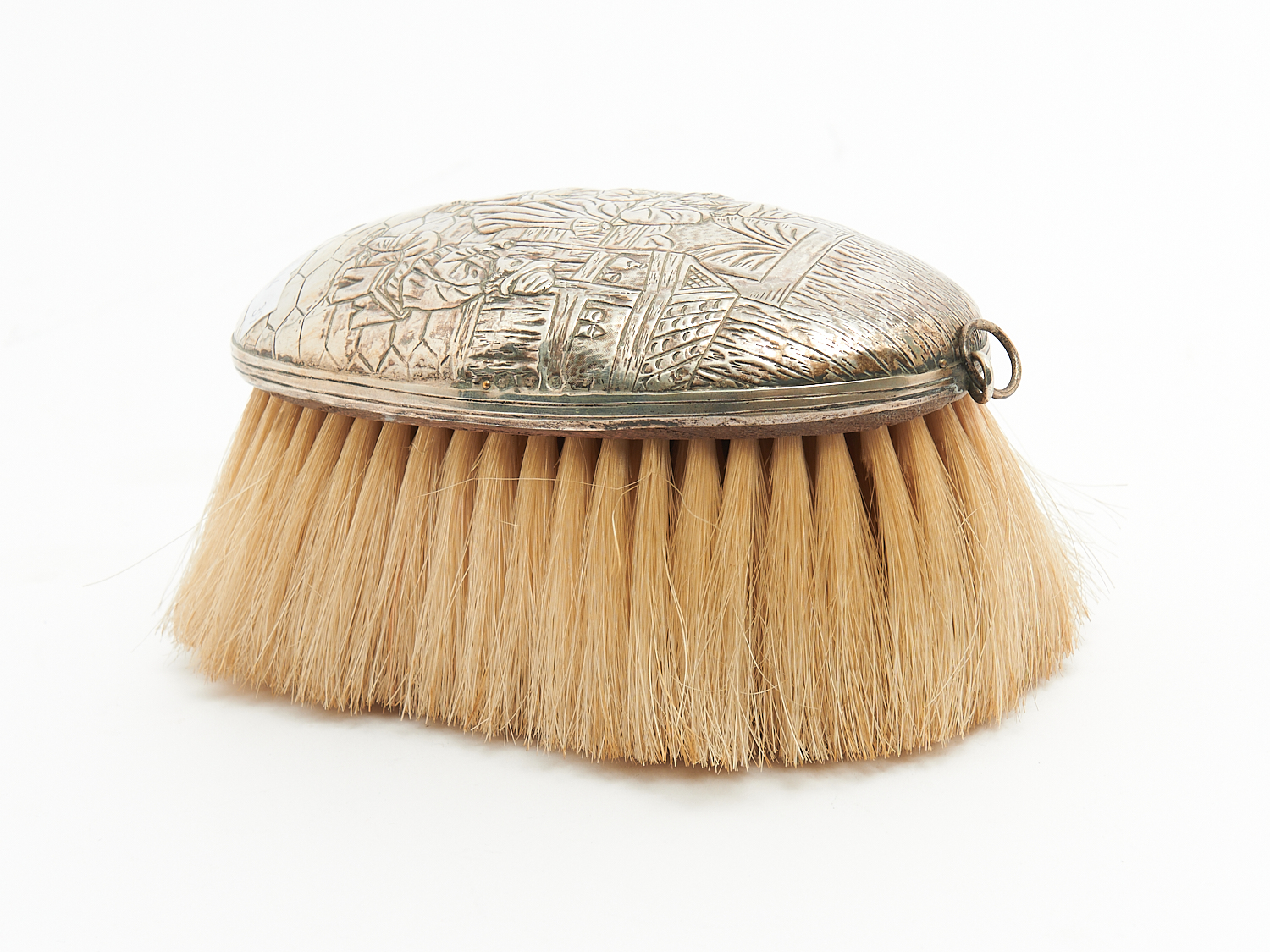 A LATE 19TH CENTURY DUTCH REPOUSSÉ SILVER-TOPPED HORSE HAIR BRUSH L.14.5CM, LEONARD JOEL DELIVERY SIZE: SMALL