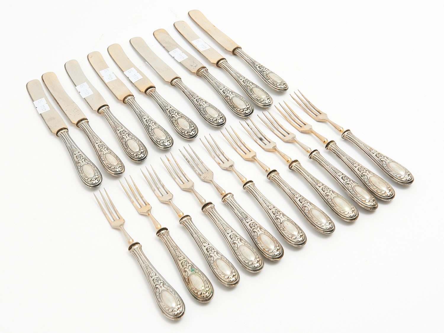 A GERMAN 800 SILVER SET OF EIGHT DESSERT KNIVES AND FORKS L.18CM (LONGEST), LEONARD JOEL DELIVERY SIZE: SMALL