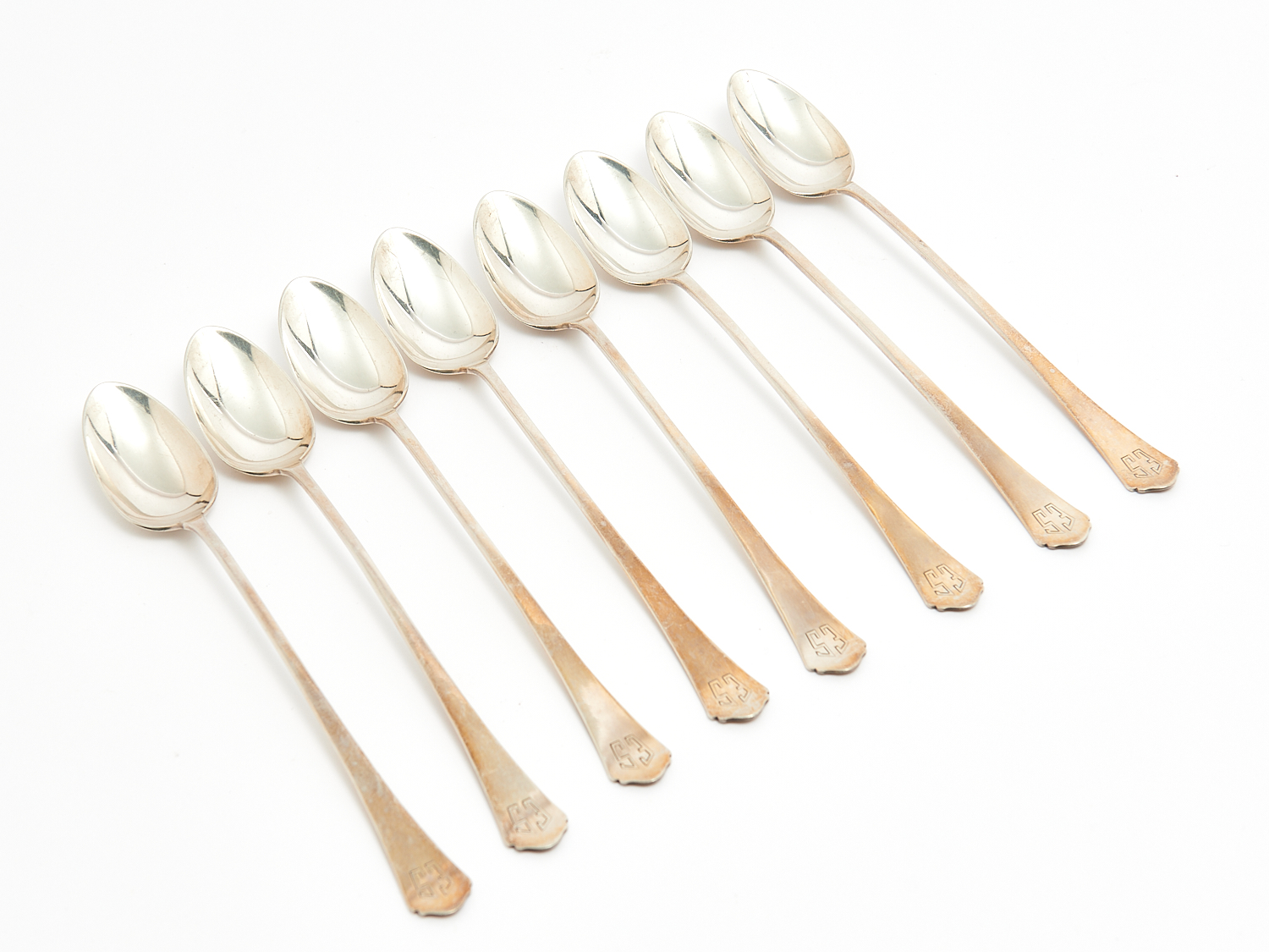 A SET OF EIGHT AMERICAN STERLING SILVER ICE CREAM SPOONS L.19.5CM, 228g (IN TOTAL), LEONARD JOEL DELIVERY SIZE: SMALL