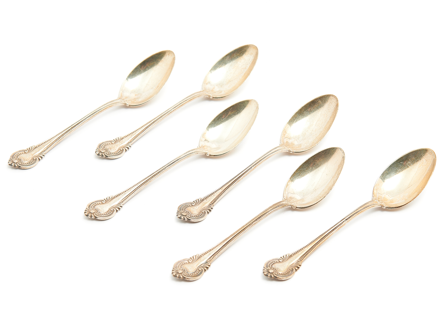 A SET OF SIX AMERICAN STERLING SILVER TEA SPOONS L.14.5CM, 166G (IN TOTAL), LEONARD JOEL DELIVERY SIZE: SMALL