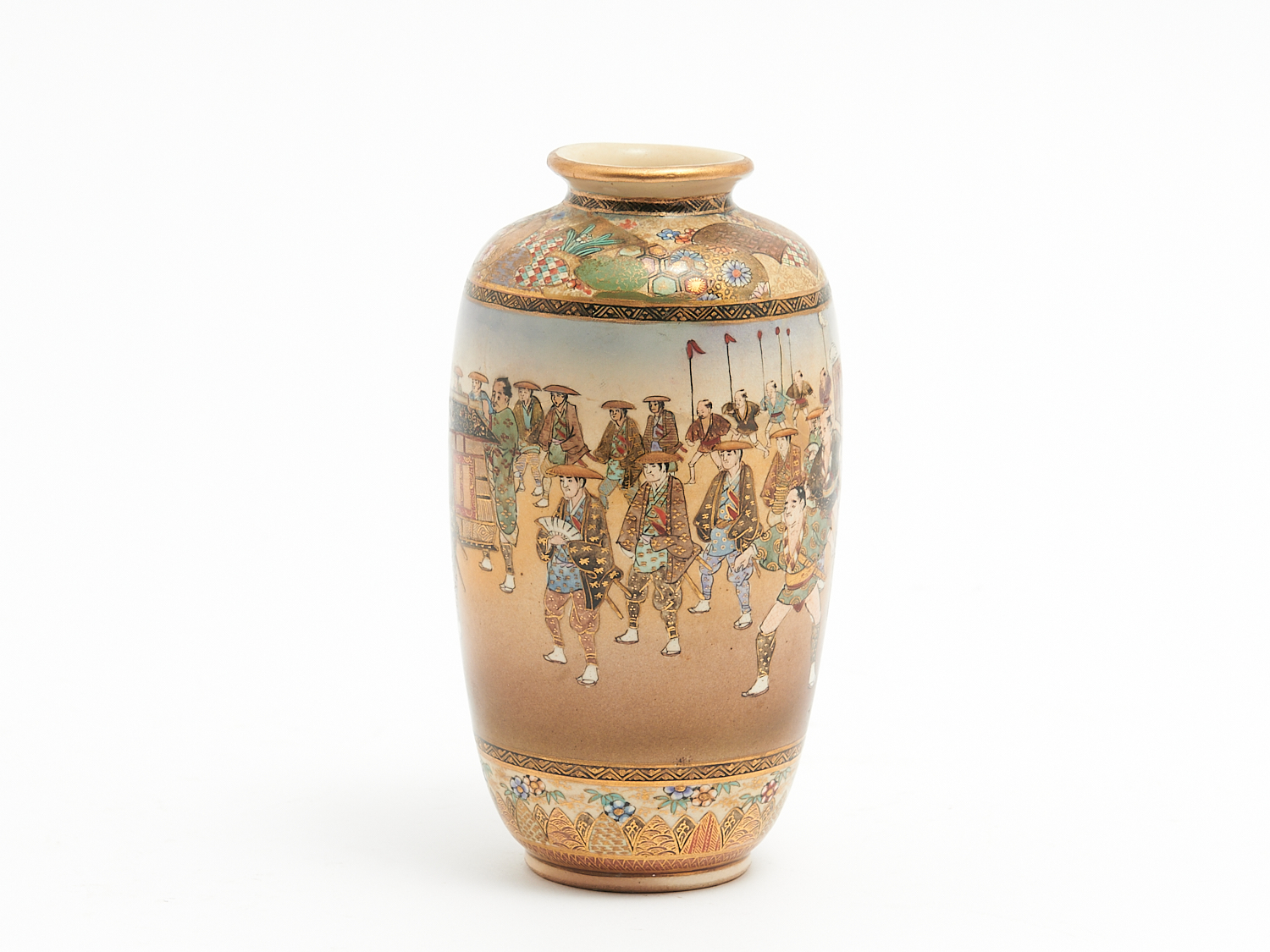 A SMALL SATSUMA VASE DECORATED WITH A PROCESSION SCENE H.15.5CM, LEONARD JOEL LOCAL DELIVERY: SMALL
