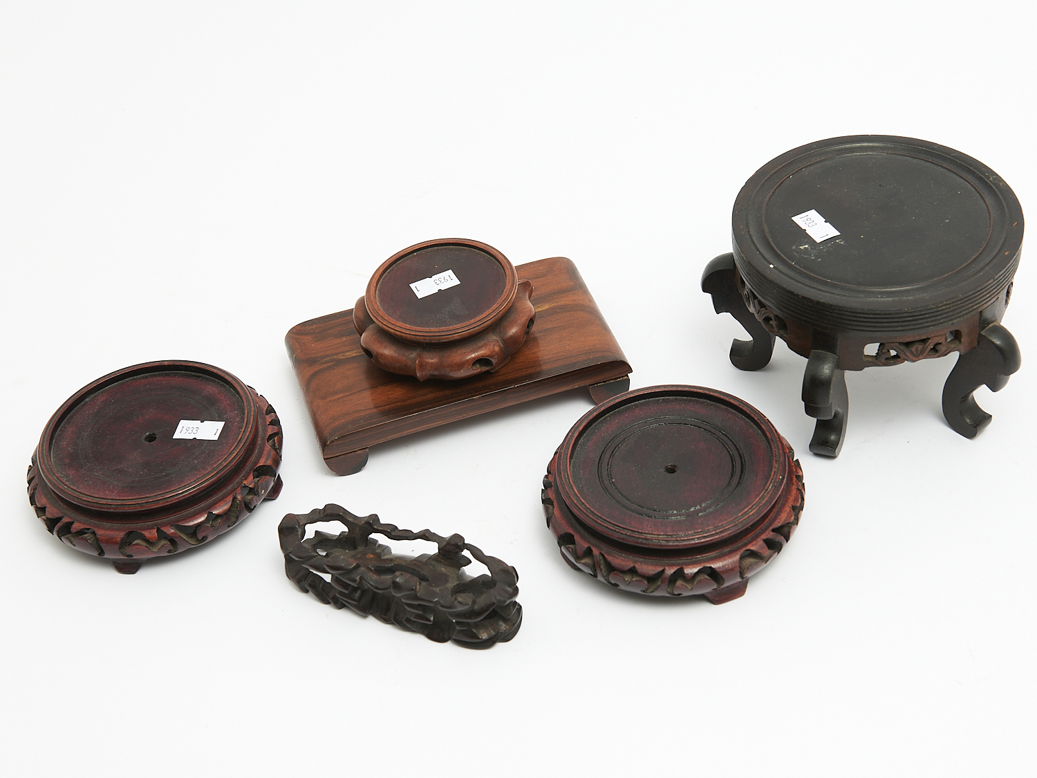 A GROUP OF ASSORTED WOODEN STANDS DIA.13CM (LARGEST), LEONARD JOEL LOCAL DELIVERY: SMALL