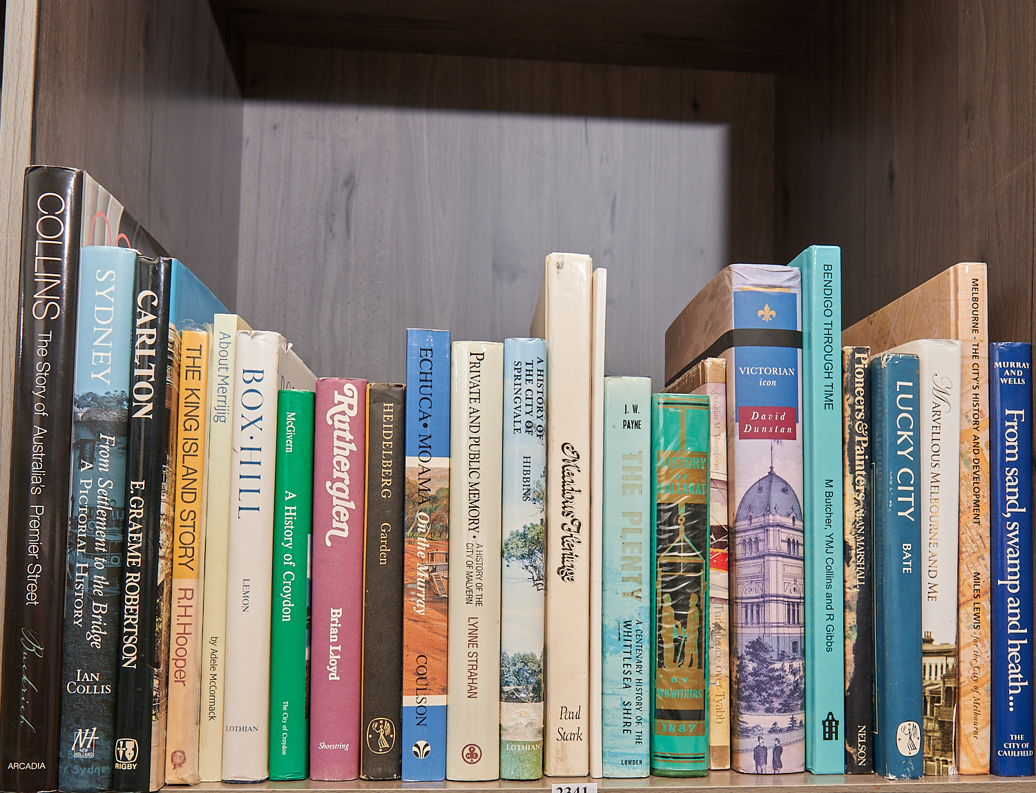 A SHELF OF LOCAL HISTORIES INCL MALVRN, MOORRABIN, RUTHERGLEN, BOX HILL ETC, LEONARD JOEL LOCAL DELIVERY: MEDIUM