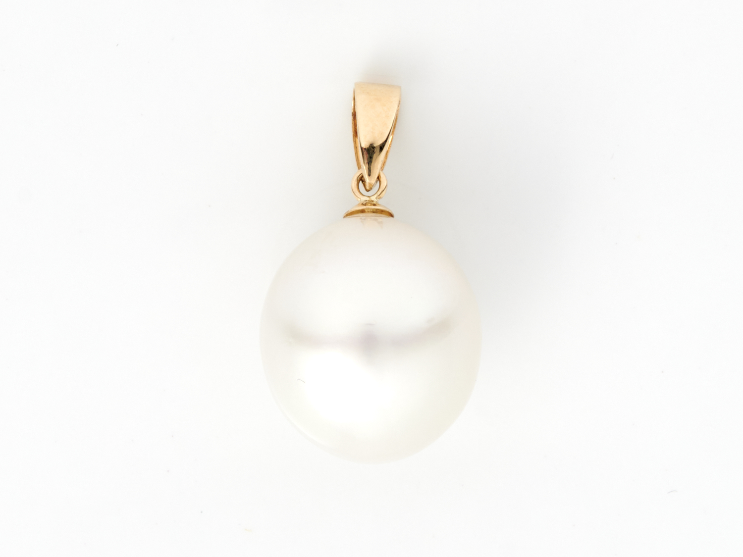 A SOUTH SEA PEARL PENDANT IN 9CT GOLD, THE PEARL MEASURING 12.9MM, LENGTH 20MM
