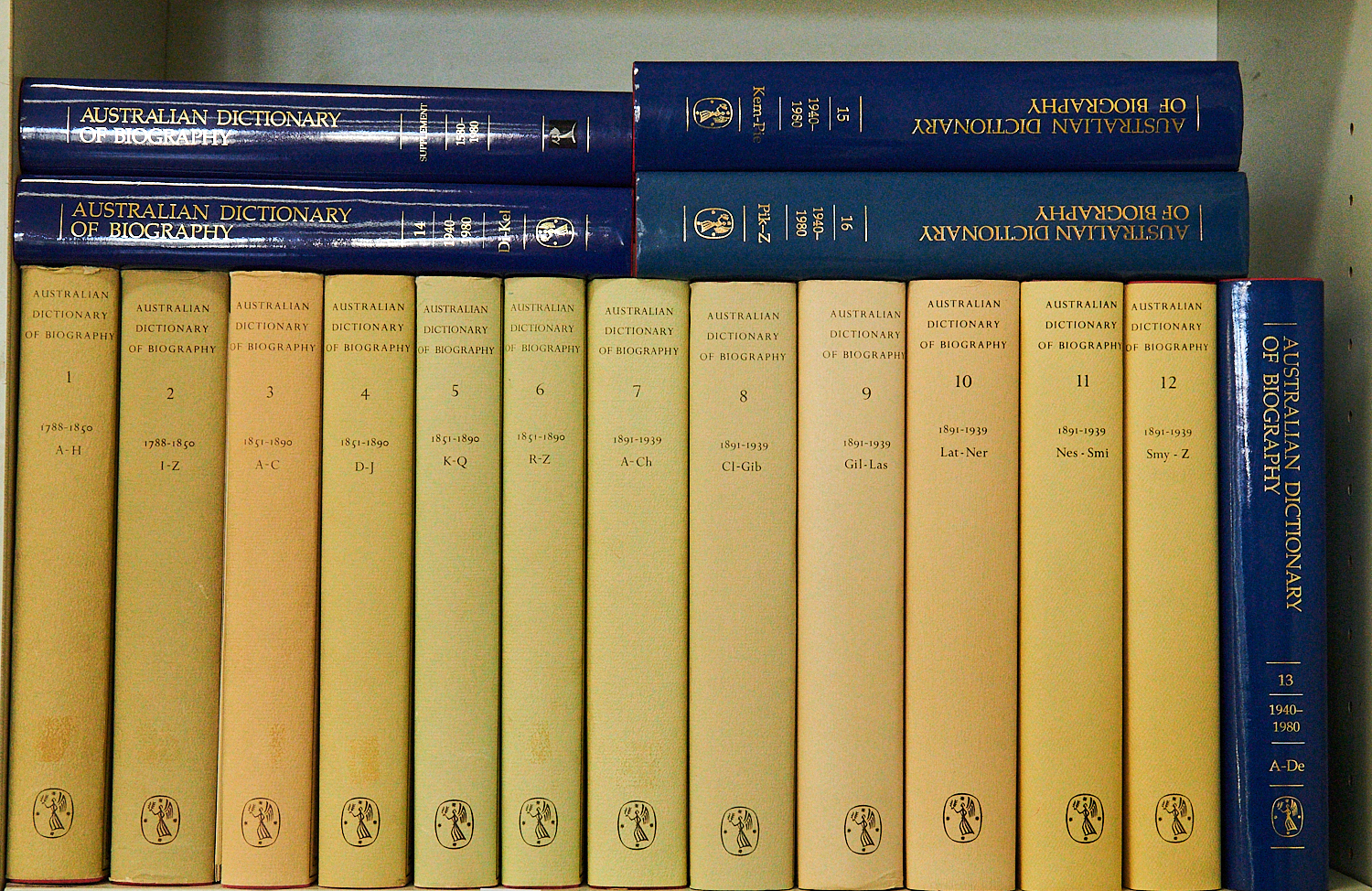 THE AUSTRALIAN DICTIONARY OF BIOGRAPHY, COMPLETE SERIES TO 1980 INCLUDING THE 1580-1980 SUPPLEMENT (17 VOLS), LEONARD JOEL DELIVERY SIZE: LARGE