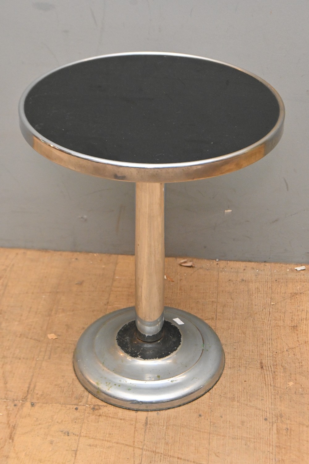 AN ART DECO CHROME AND GLASS TOP SIDE TABLE (A/F) (52CM H X 40CM DIA) (LEONARD JOEL DELIVERY SIZE: LARGE)